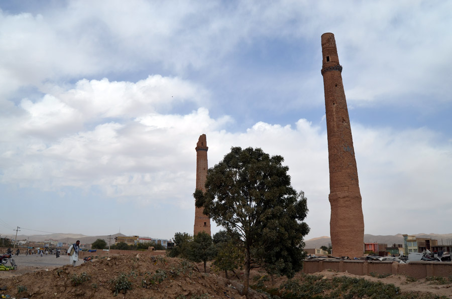 The set of four minarets is in an area that is now bisected by a road within mounds of historical rubble and current junk |