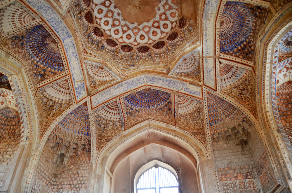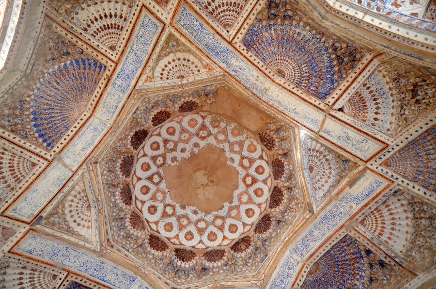 | Belonging to the same timeframe as the other Timurid buildings in Uzbekistan, this mausoleum is a perfect example, with the exception of the exterior tiling which had been destroyed by Soviet shelling. The remnants of the tiling on the dome gives you an idea of how it used to look, It was built in 1432 and Gowhar Shad, her son, and it is believed seven more Timurid princes, are buried here. |