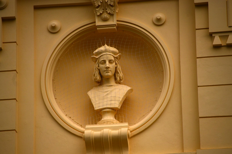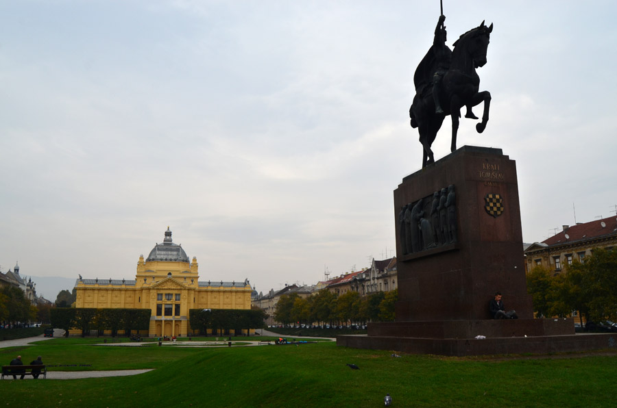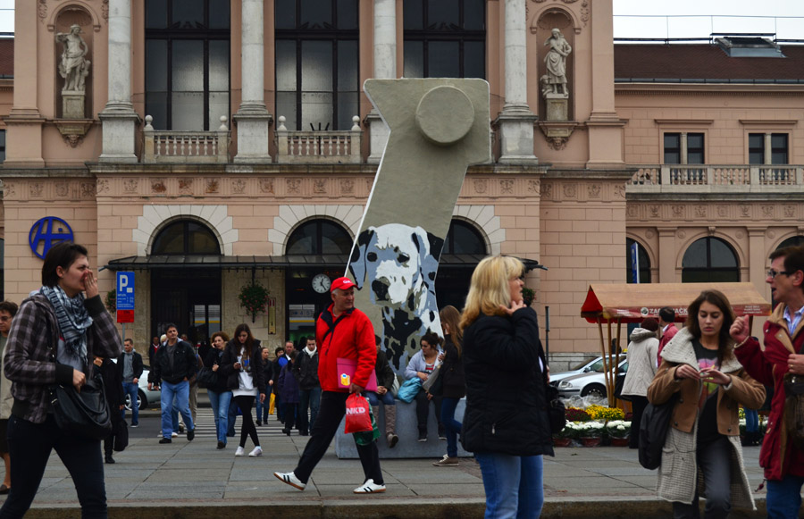 The Palace Hotel is just past the yellow building and that statue points at the main station |