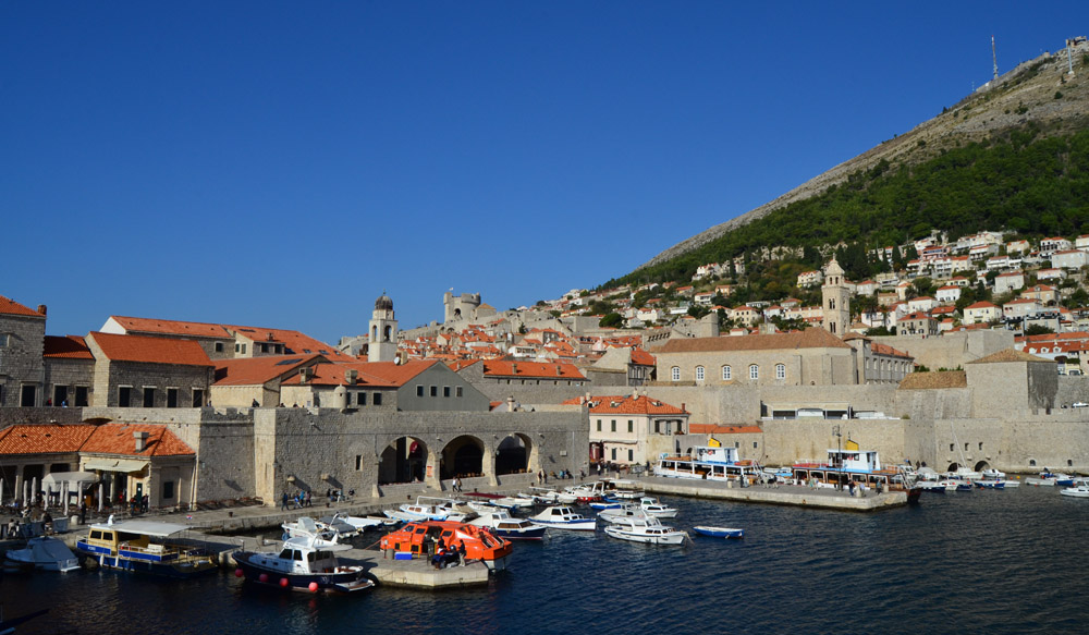 I arrived in the dark, and knew little of what to expect. I got an inkling when I stepped on the balcony of my room and got a view of the new harbor of Dubrovnik. Still, that was new stuff, not the Old Town. That was indeed a sight to behold and one I have to encourage enveryone to see once in their lifetime.. |