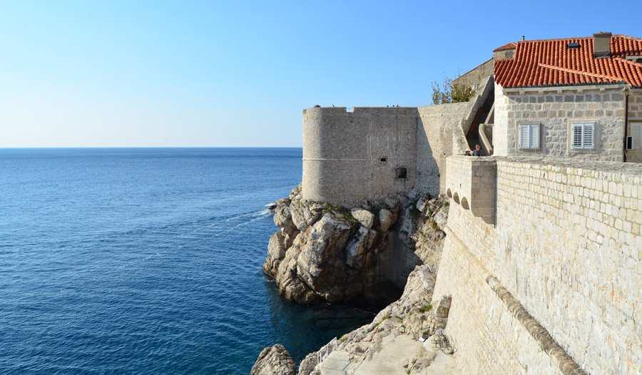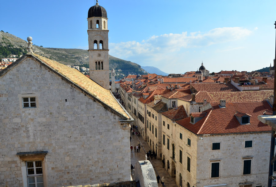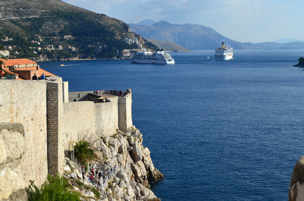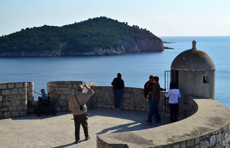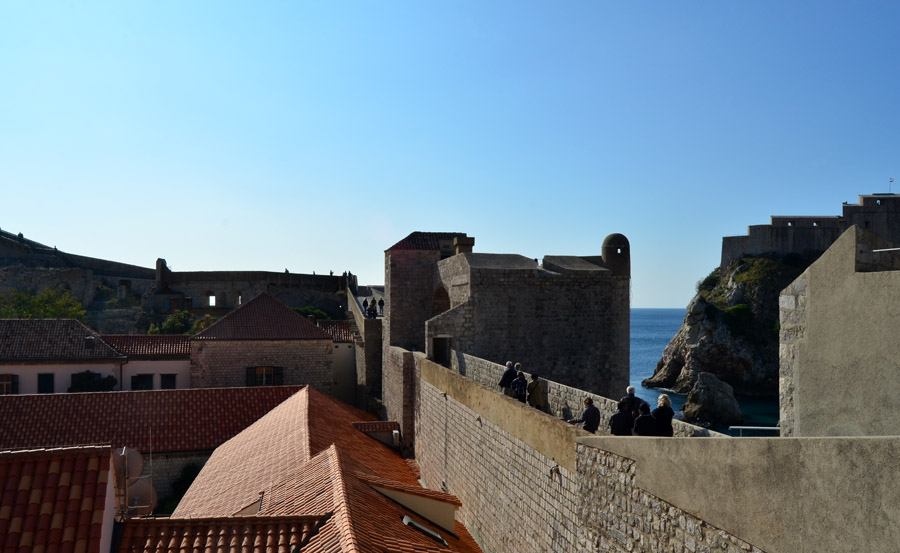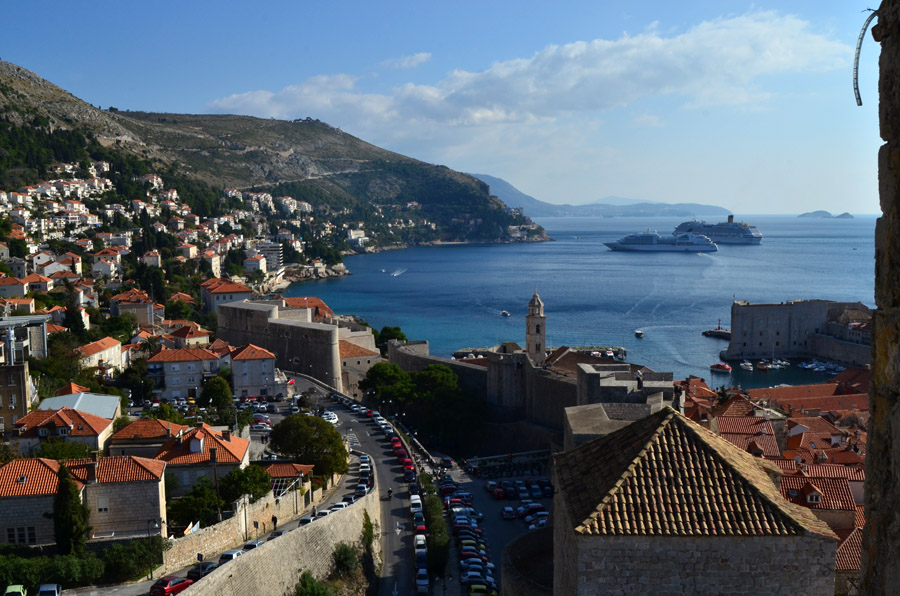 Looking south toward the harbor, the modern city, as it continues to expand, and the southern fortifications and storehouses |