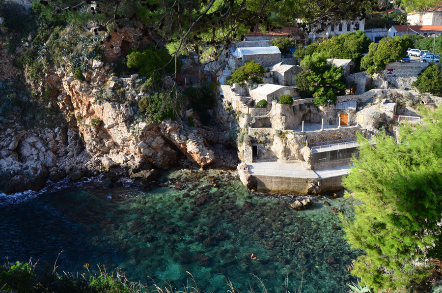 Looking toward the land, and down, I saw another swimming cove, although not my style. I like to swim pretty far out in deep water. |