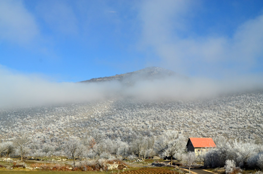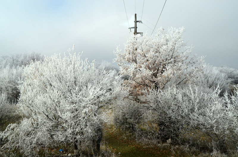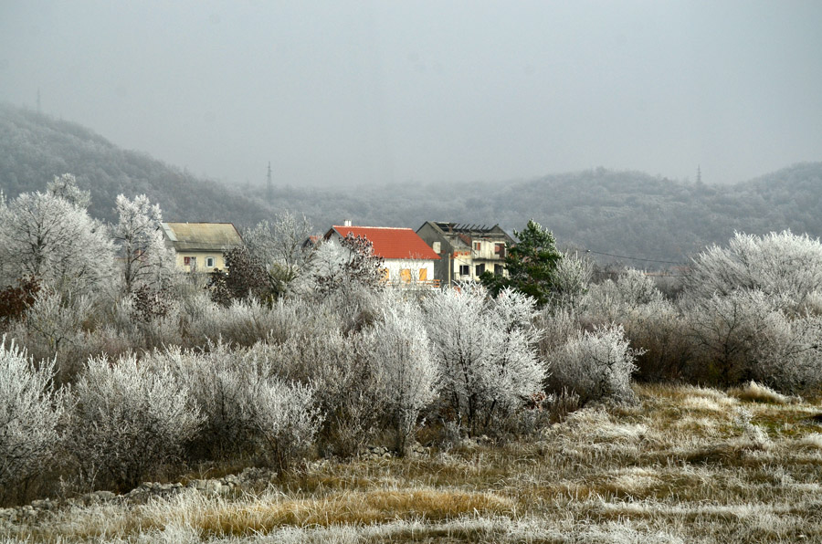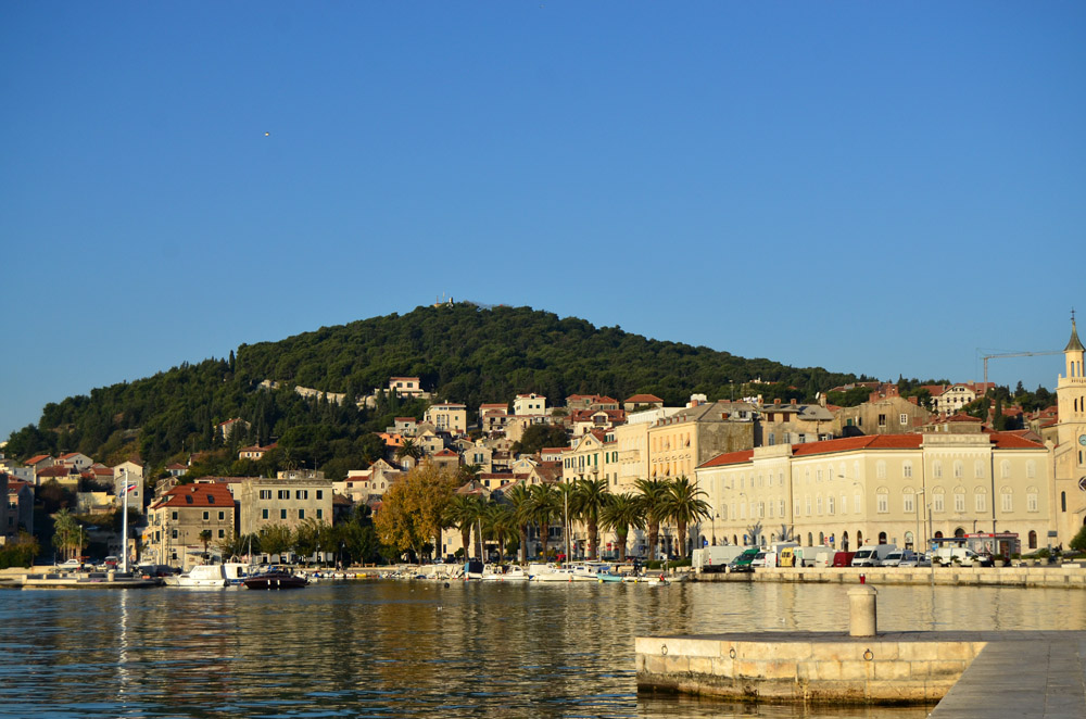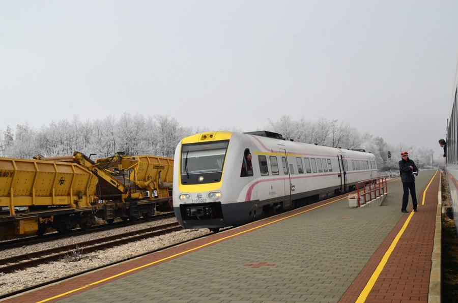 A final look at the early moring-illuminated hill I hiked the day before, and it was off to the station |