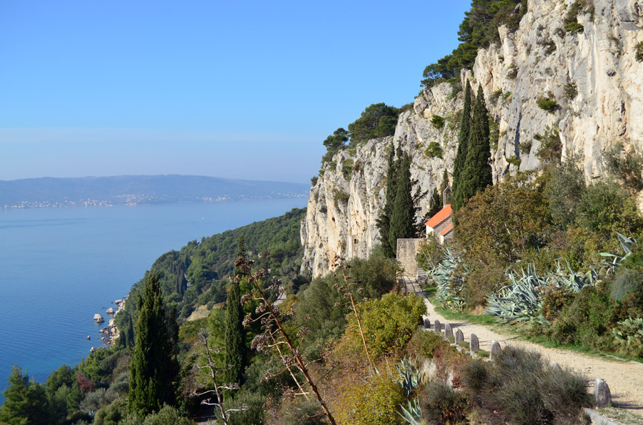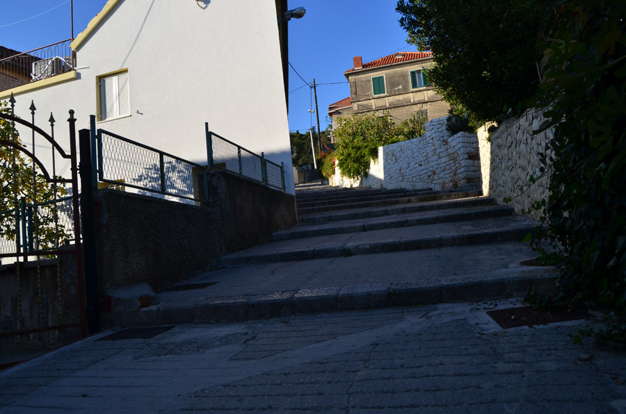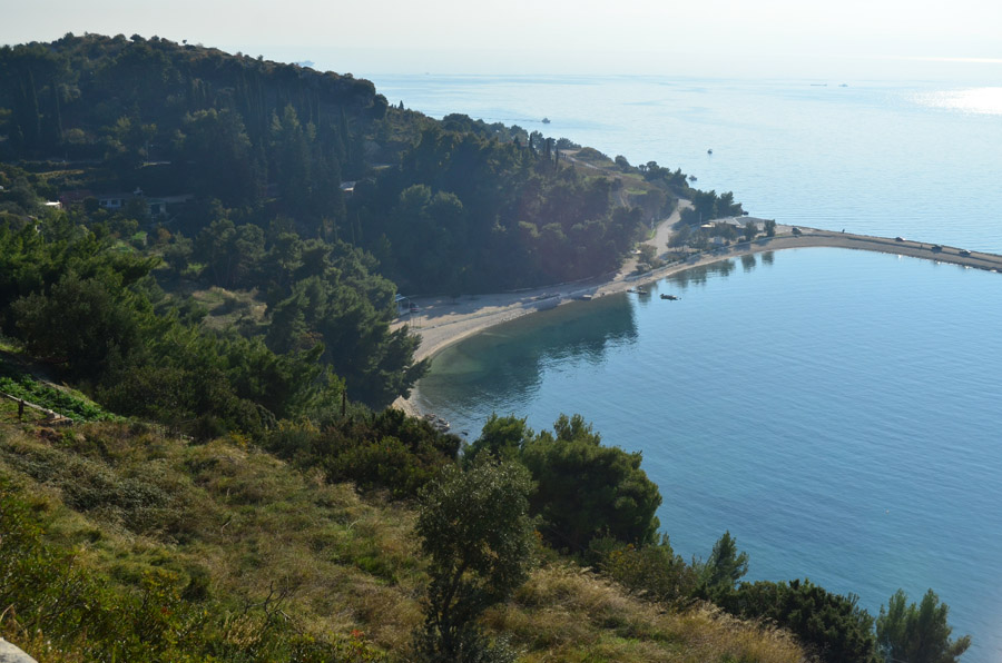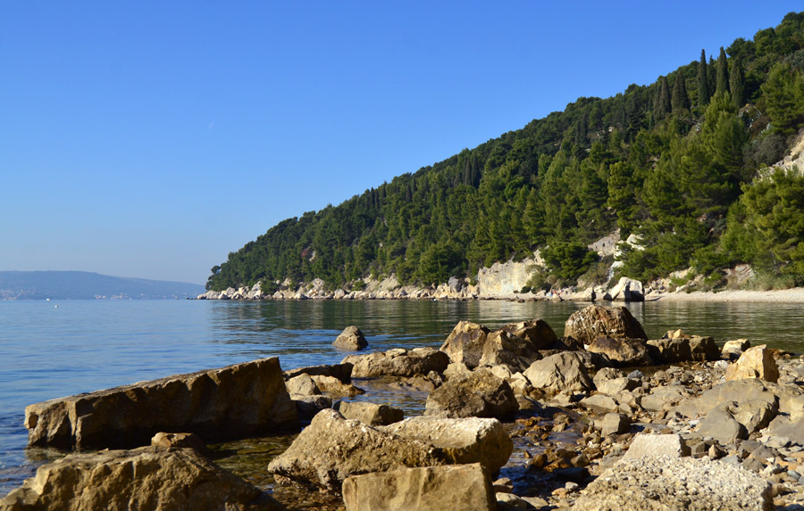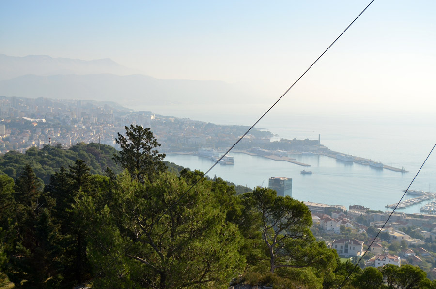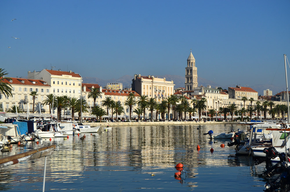 After the bracing swim, I walked back along the shore, stopped at a museum, and then returned to this evening-view of the Split harbor. |