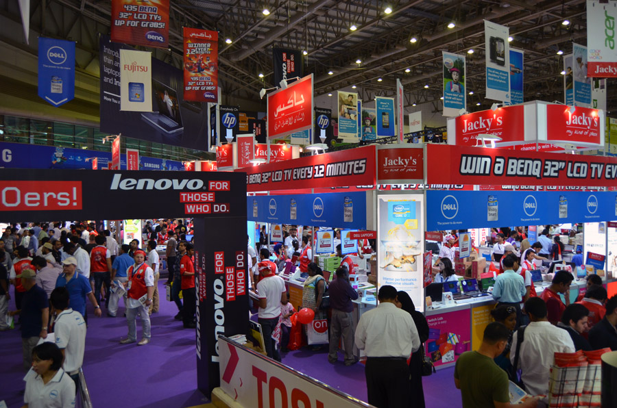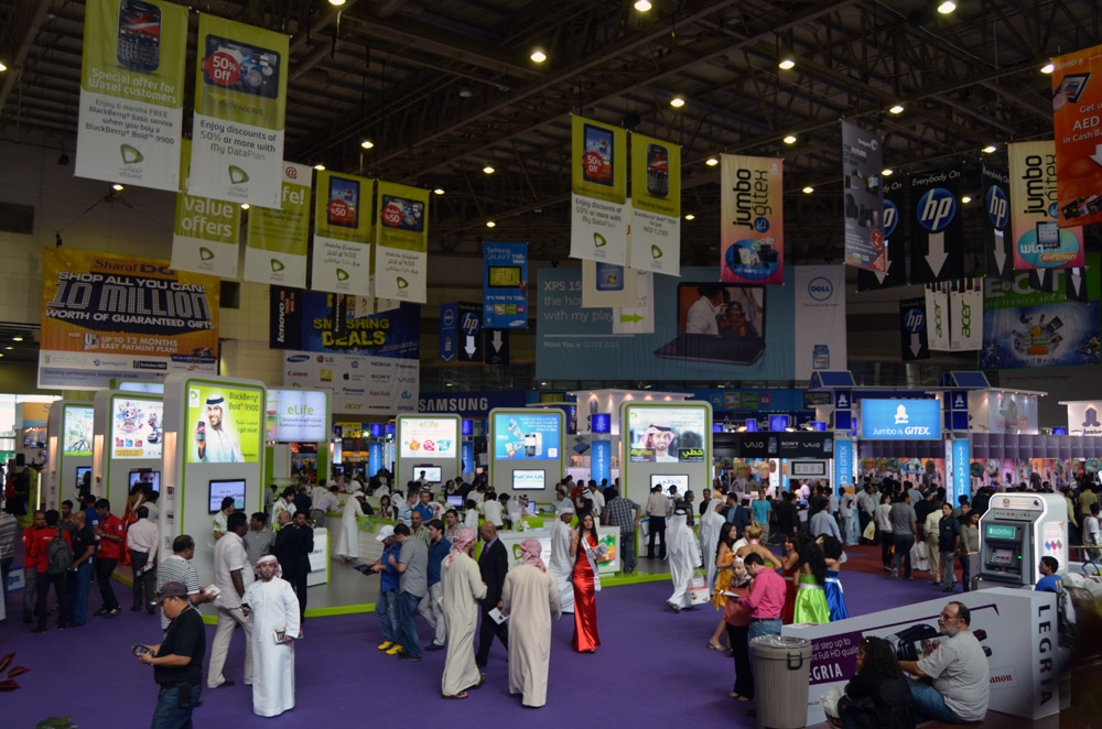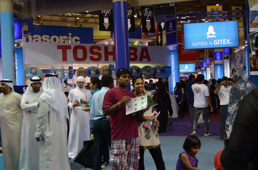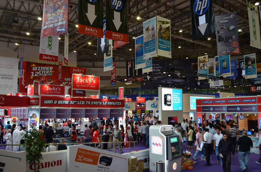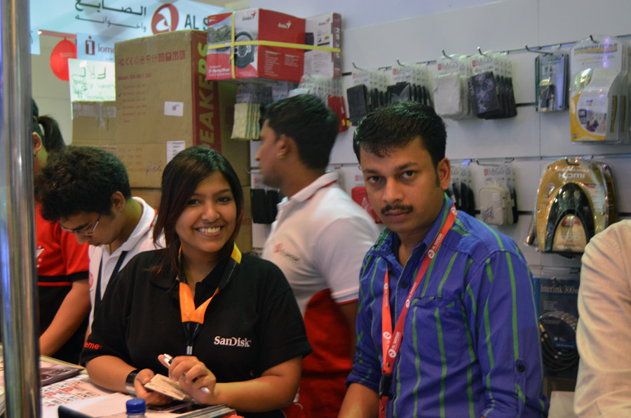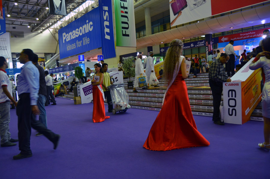 Being not the one to cruise the malls of Dubai and luxuriate in fashionable airconditioned splendor, I was very happy to hear of the technical exhibition by the airport. It required taking one metro line to the final station, always cool, and then jamming into buses packed like sardine cans with geeks and nerds. It was a great relief from me to discover that regardless of where you go, those people exist, provided there were computers, and that the all seem to have the same characteristics. A global brotherhood (and sisterhood), so to speak. The guys, shy, loving women but they are not usually part of their binary/digital world, as everywhere at computer shows, are putty in the hands of the 'booth babes', as we call them. I needed to be there to buy some more memory cards, since after Afghanistan, I was just about fresh out. |
