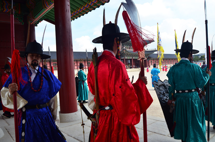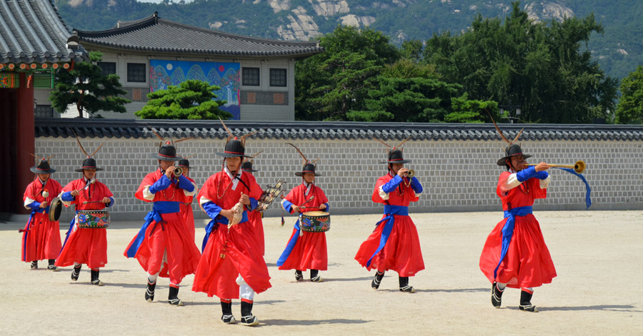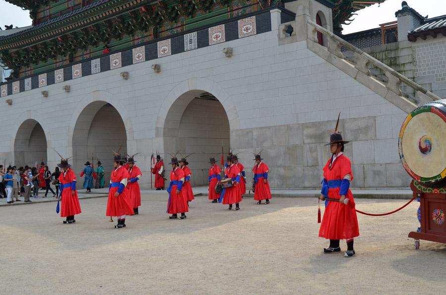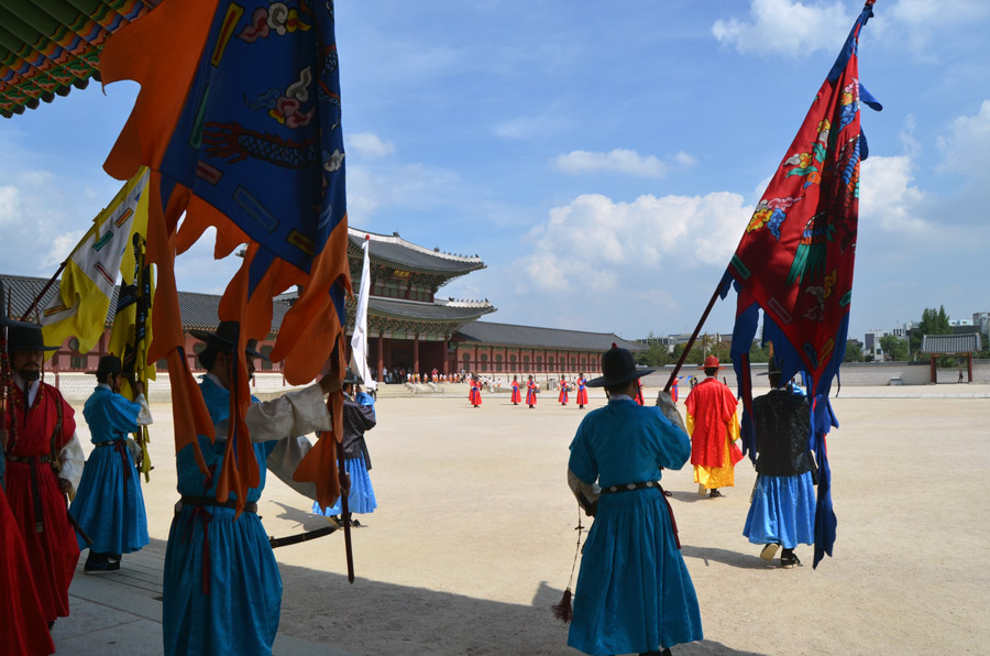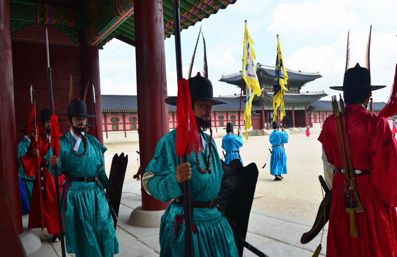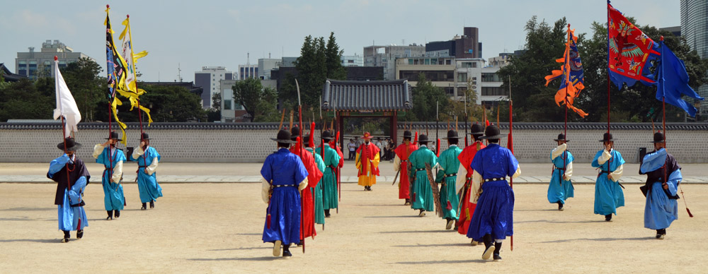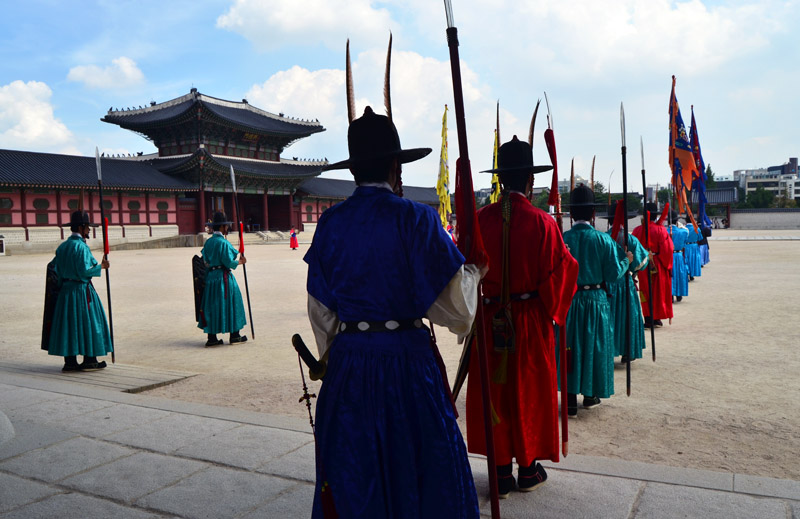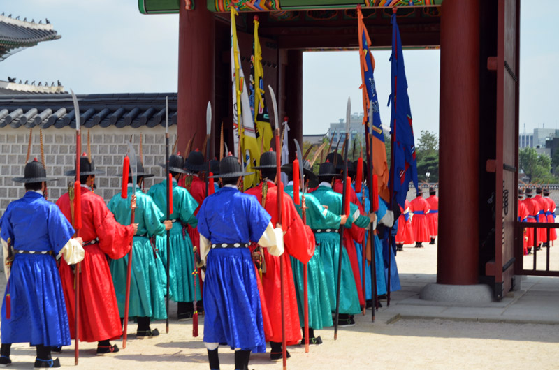 The colorful spectacle of the changing of the Guard at the Gyeongbokgung Royal Palace