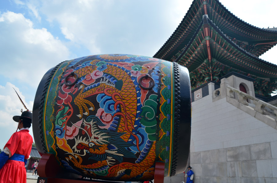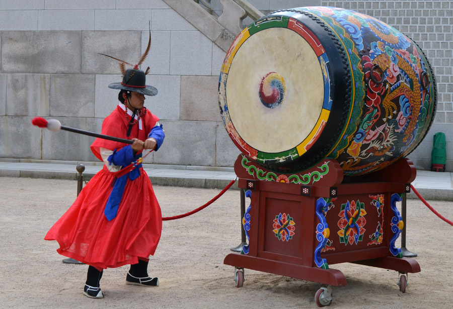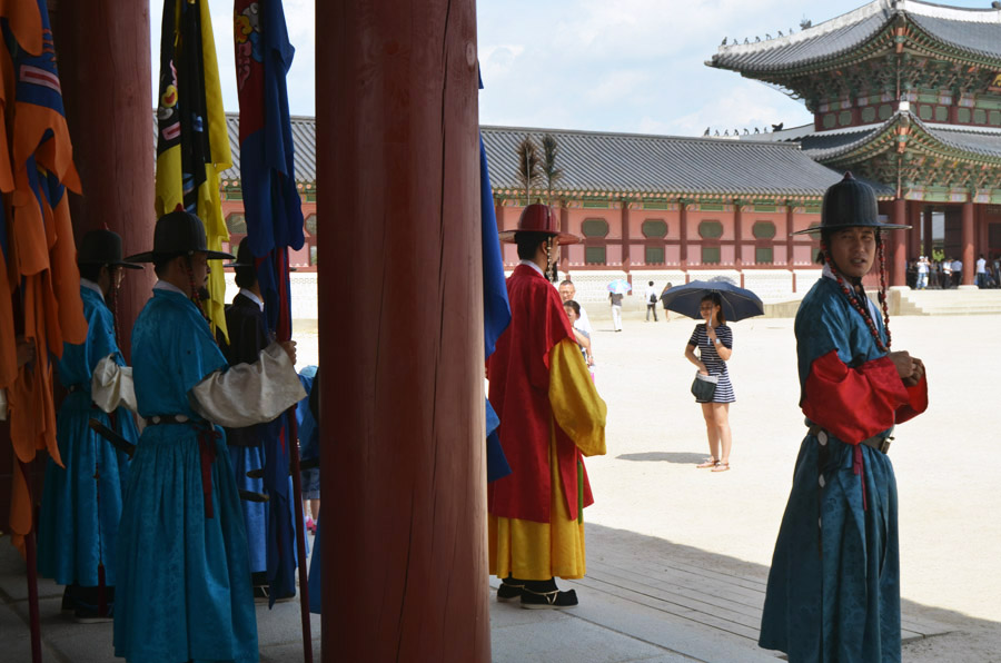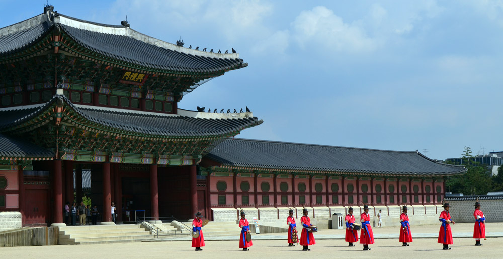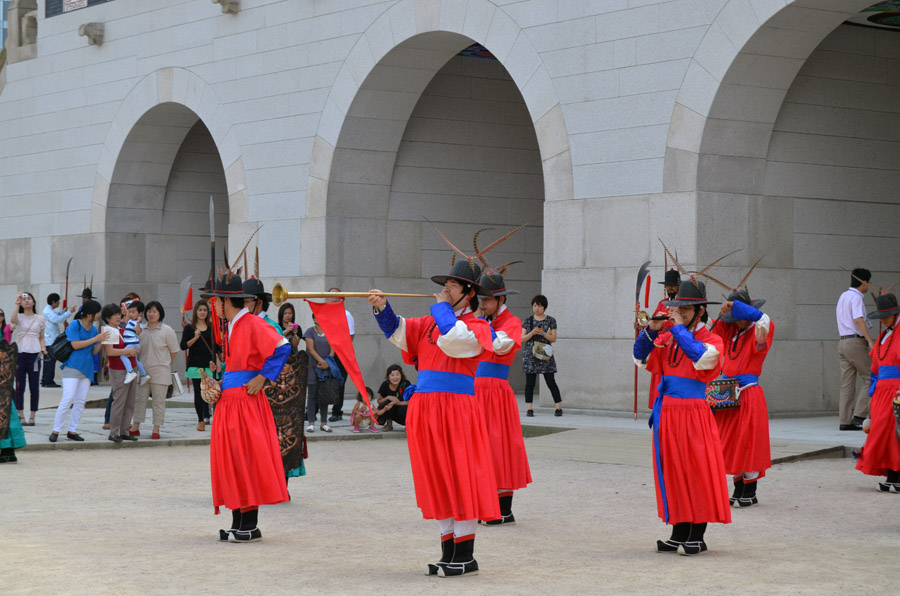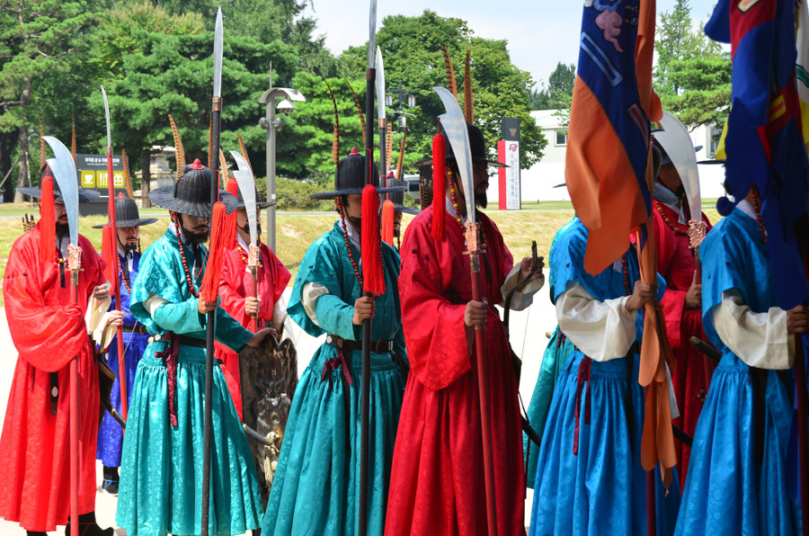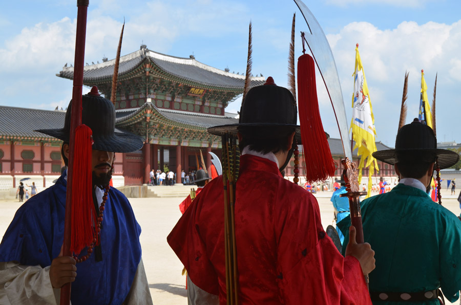 The colorful spectacle of the changing of the Guard at the Gyeongbokgung Royal Palace