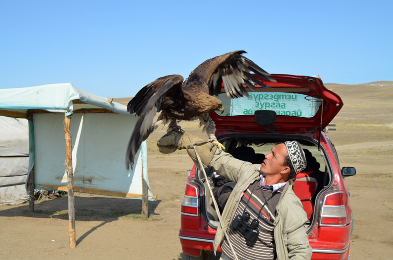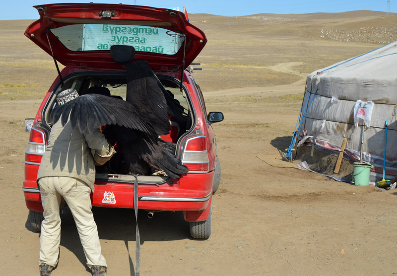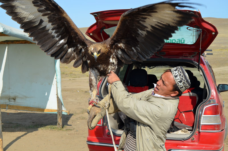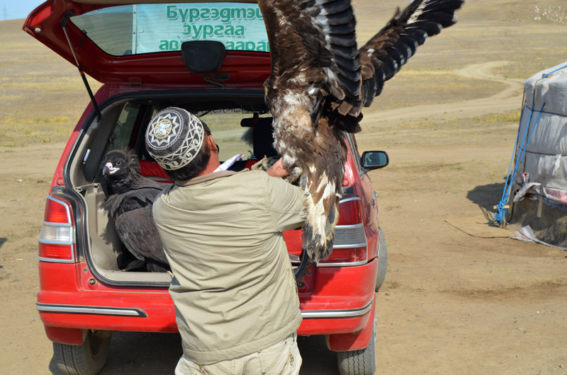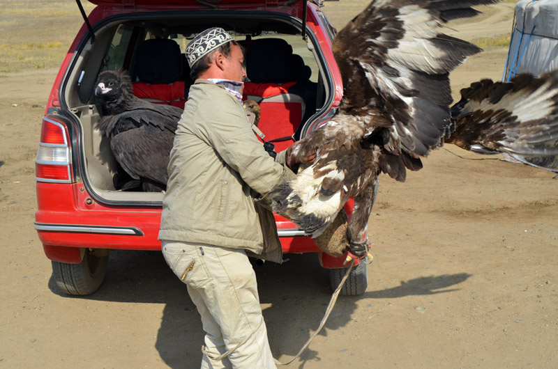 This guy was amazing. He had three large raptor birds in the back of his station wagon, and to get them in and out for the tourists was, depending on the temperament of the bird to be extracted, quite a struggle and once accomplished a personal triumph. |