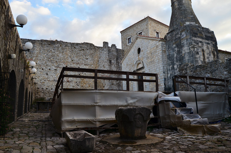 Let's head into the castle ruin and mound, partially renovated and inhabited. |