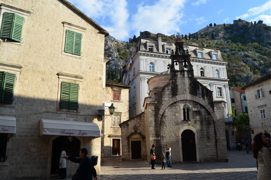 The Church of Our Lady of Remedy, on the hill, is a waypoint for those who ascend the stairs to climb the mountain above Kotor |