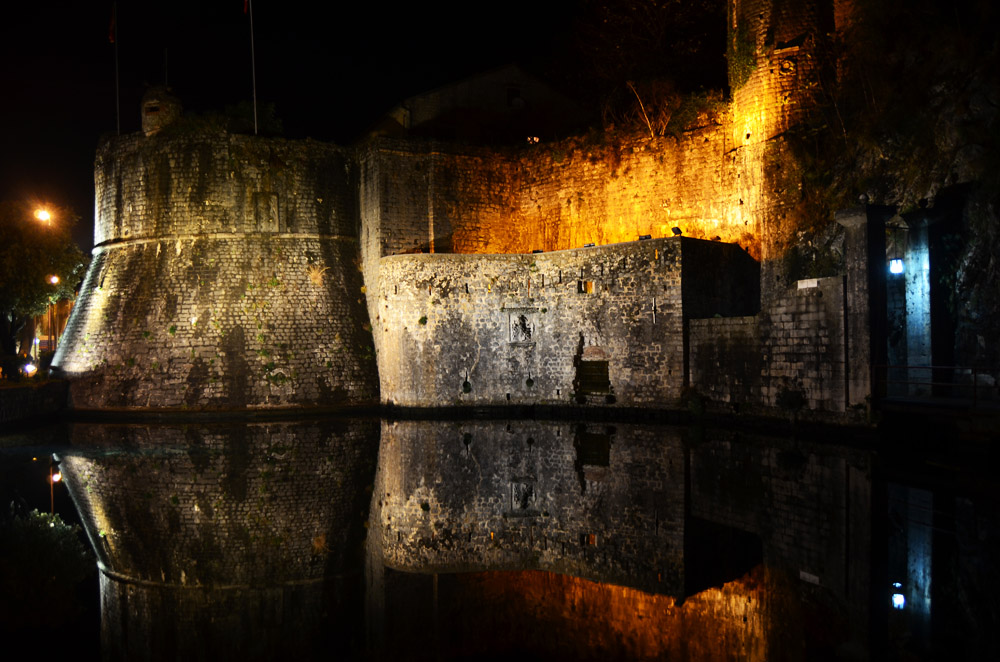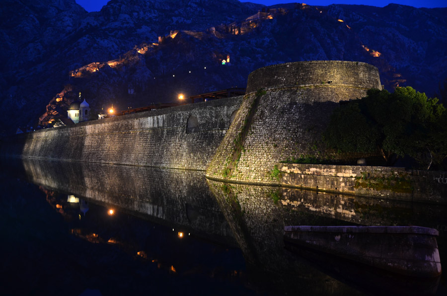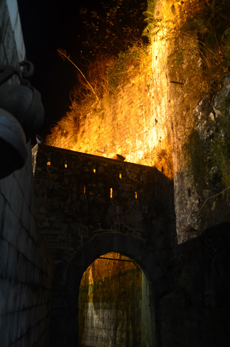 Time to light up the night. In the background you can see the stairs to the Church of Our Lady of Remedy, illuminated. Other parts are illuminated but are inaccessible. This is the northern city wall by the moat. The picture above this one is the southgate. |