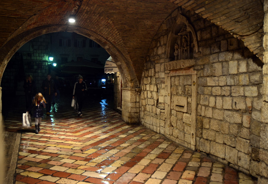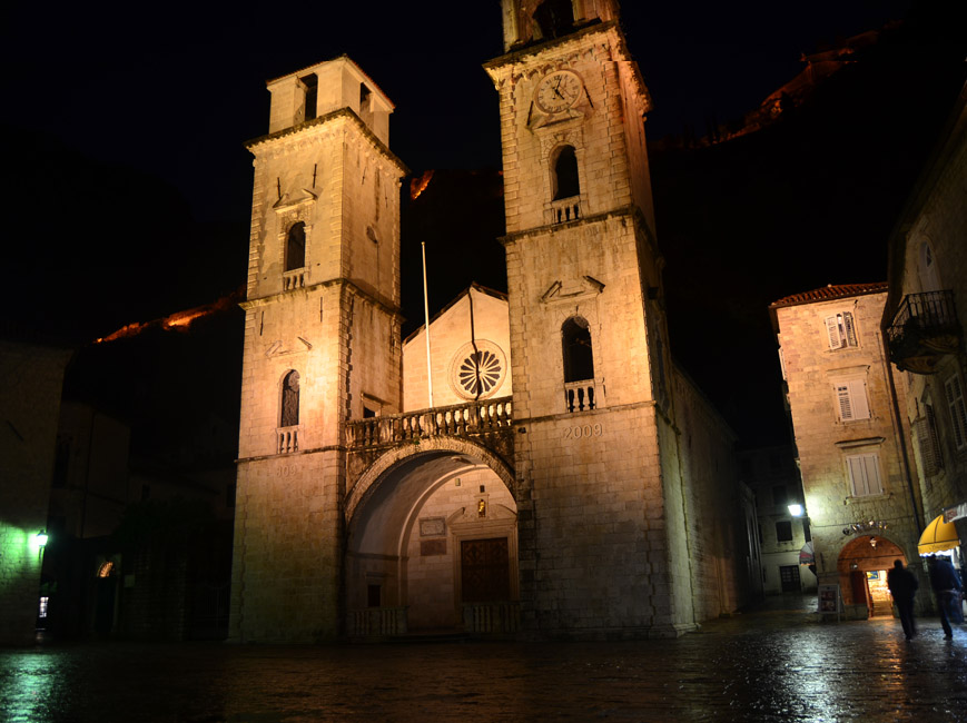 It drizzled that night and I took advantage of the effect. St. Tryphon's Cathedral is pre-Gothic and was consecrated in 1166.