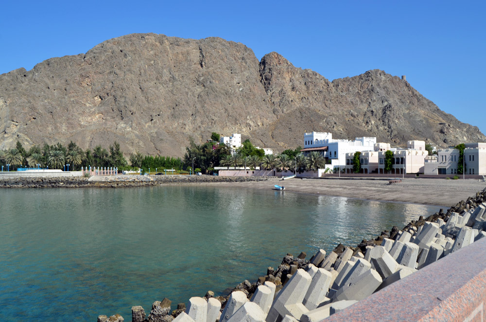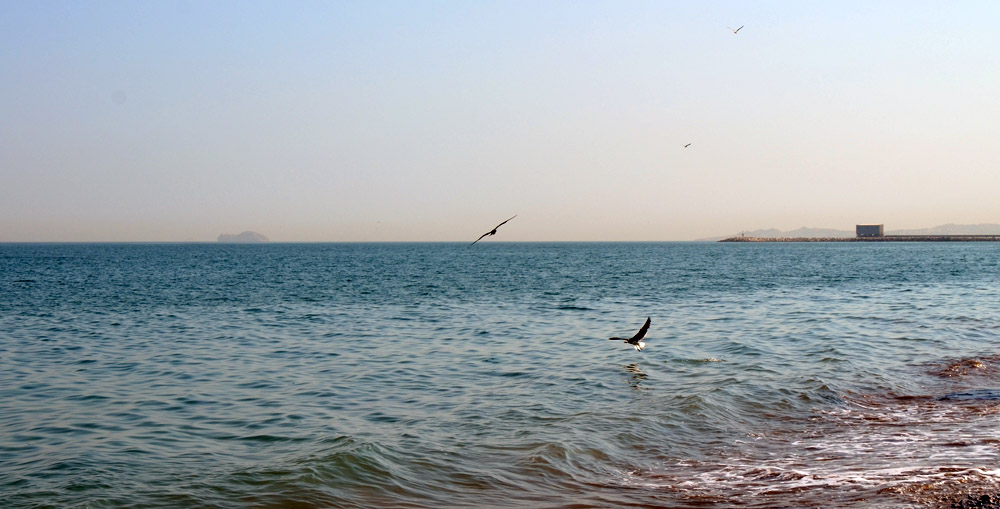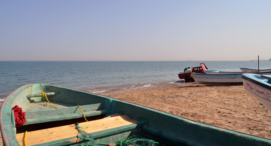 The beach right in front of the guesthouse. Below you can just make out an island. Beyond that are the shores of Iran |