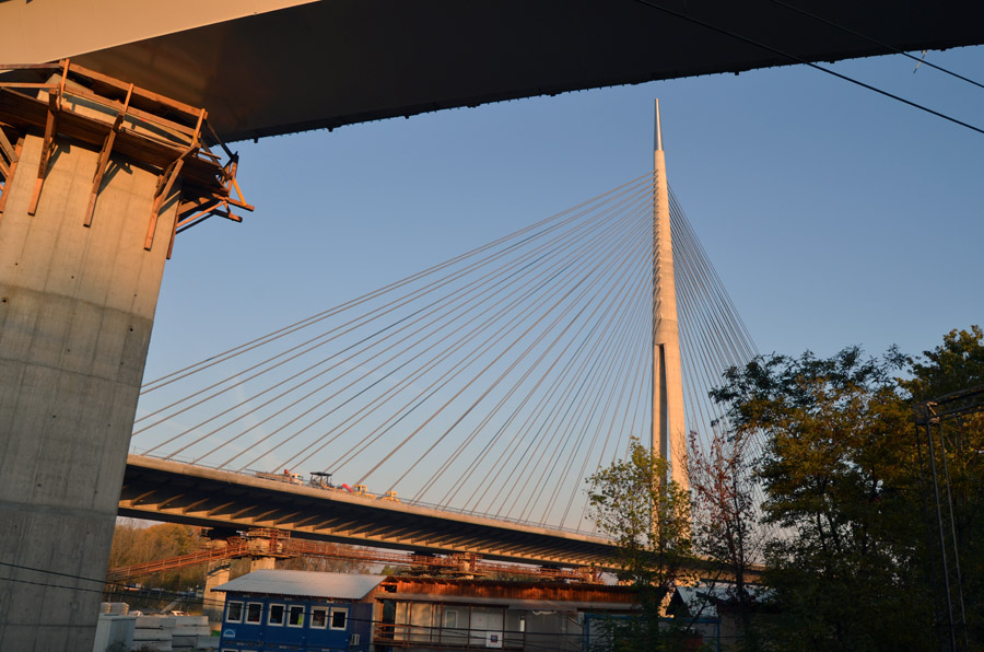 A few parting shots from the train to Skopje. Here a new bridge across the Sava River is being finished |