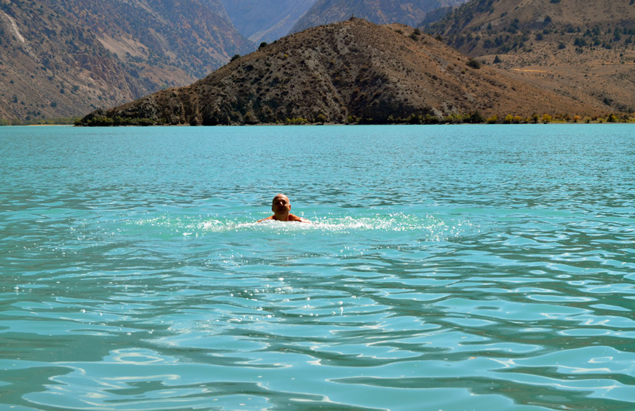 The lake: cold as ice and a very strange, mineral induced color, Iskander-kul is located at an altitude of 2,195 m (6600 ft) on the northern slopes of the Gissar Range in the Fann Mountains, it is the highest in the range. |