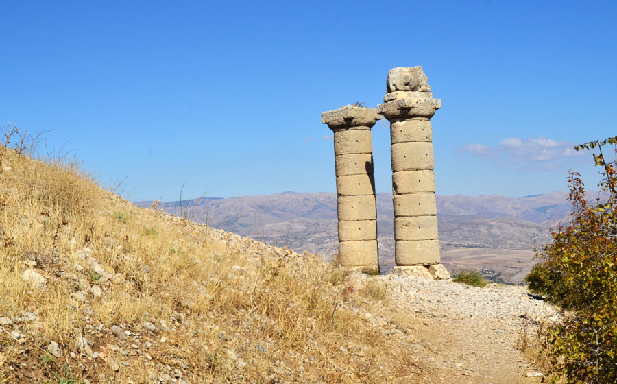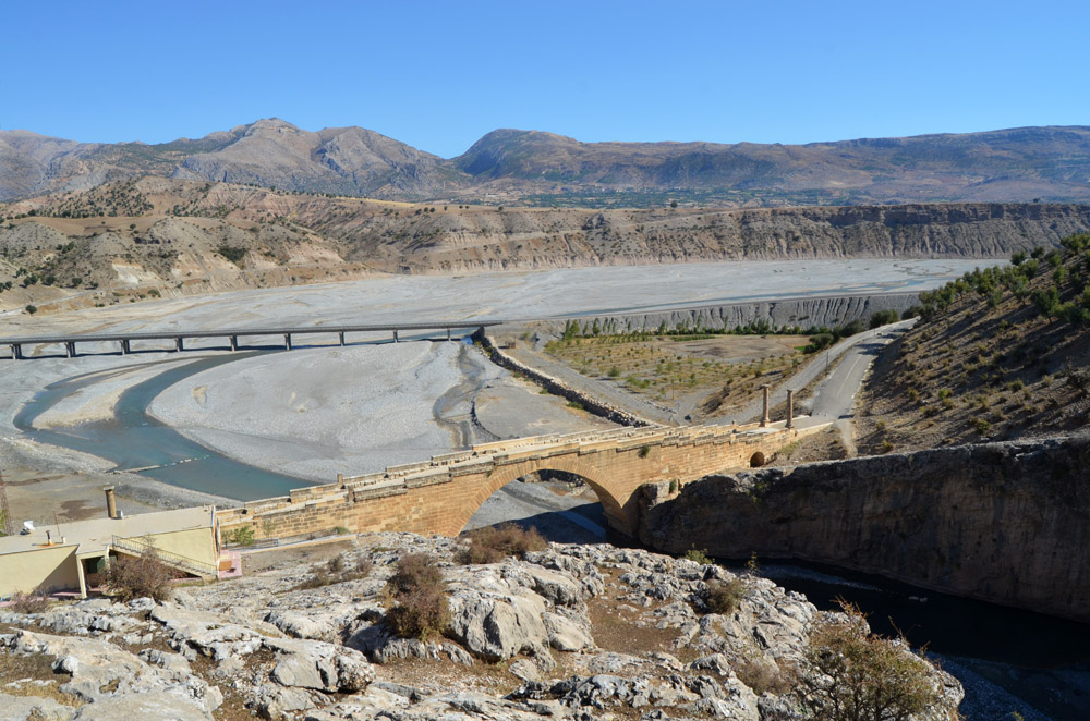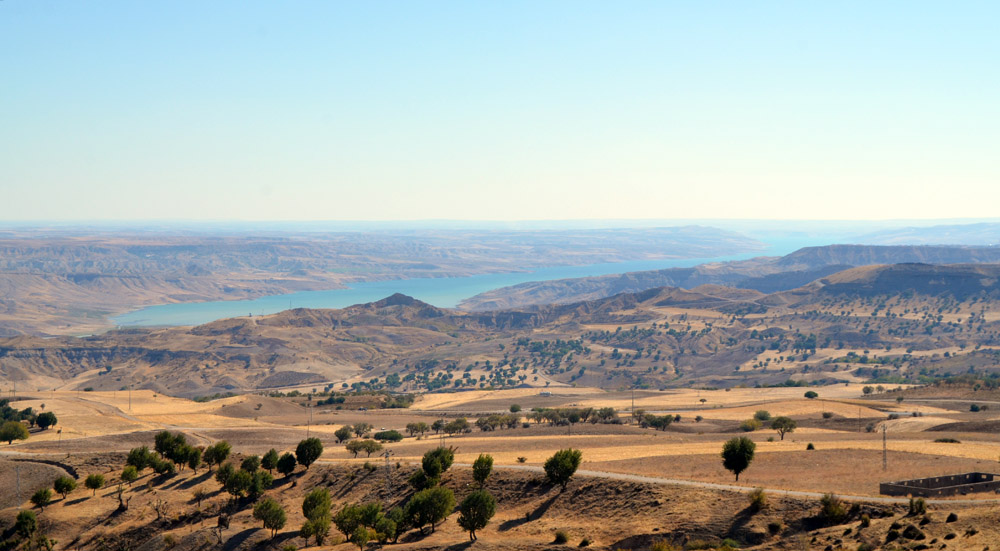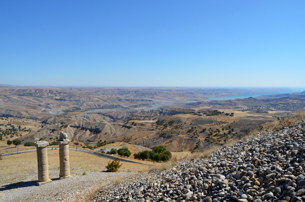 The spectacular landscape below the funeral mound looking across the dammed Eurphrates River that originates in Turkey |
