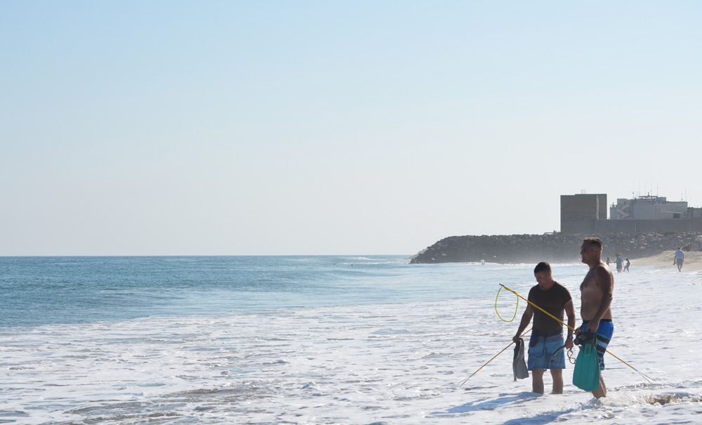 A couple of US Marines are trying their luck at spear fishing. They said that it was more difficult than they expected |