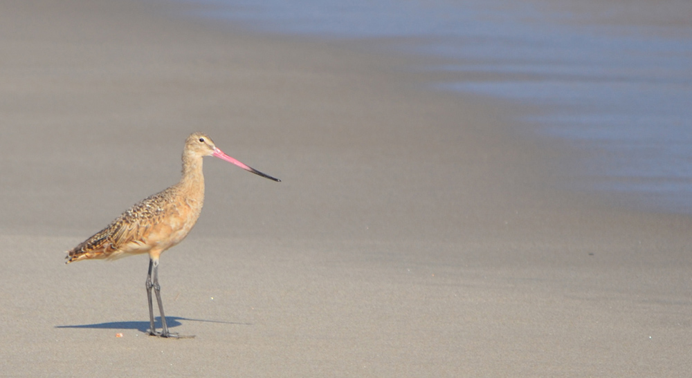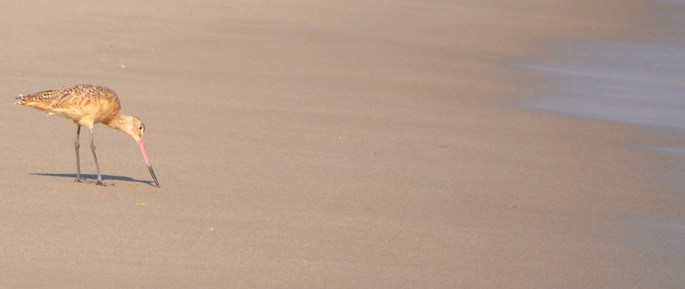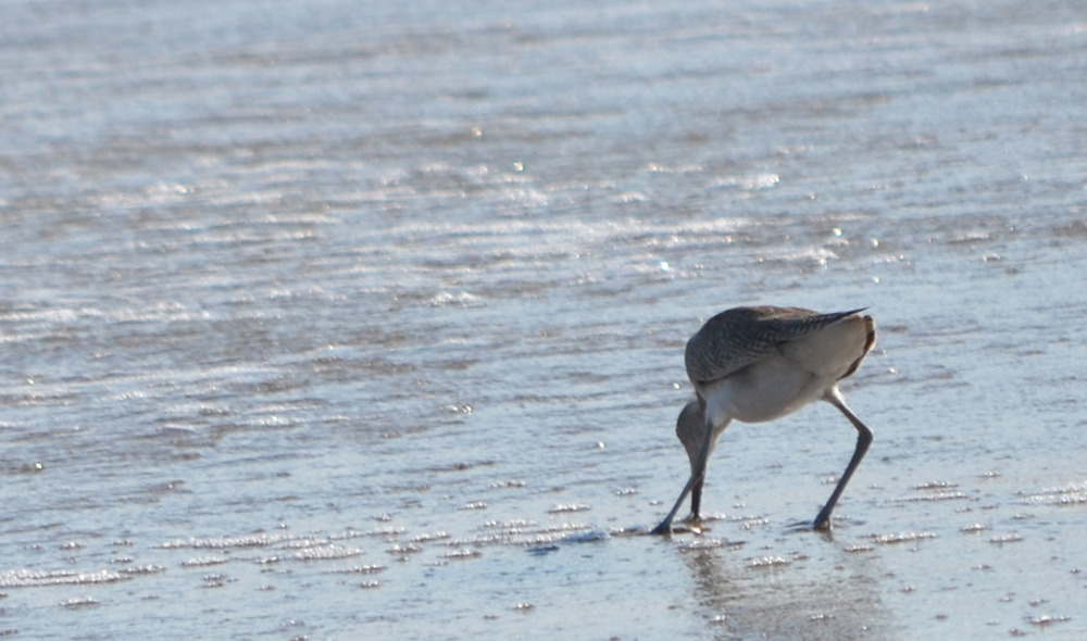 Maybe not always dignified, but that's how it's done. Wait for the waves to recede and then dig (Marbled Gotwit) |