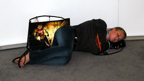 Below: Siggraphs can be a tiring experience, and she was by no means the only one crashed-napping.