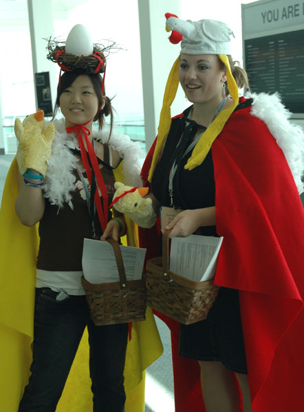 A delightful pair acting as the Chicken and the Egg.