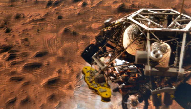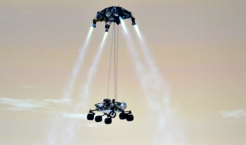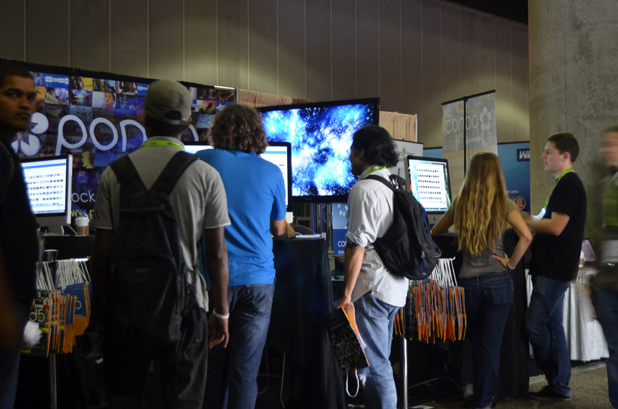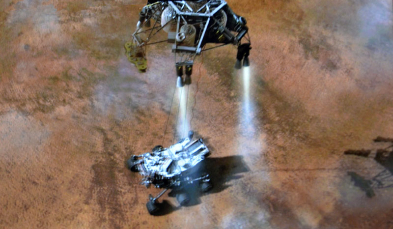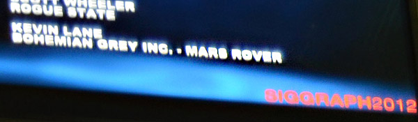 | At one point I arrived from my rounds back at the Newtek booth and members of the Bohemian Grey Inc. were showing the outstanding Mars Science Laboratory (MSL) Curiosity Rover landing animation (7 Minutes of Terror). Go to the link for the whole video. |