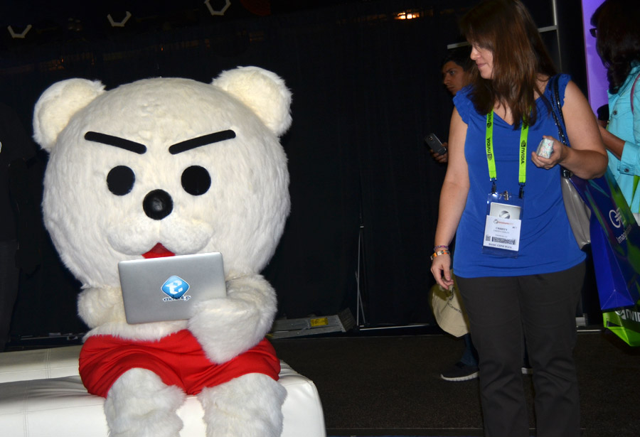 Seemed like I was the only visitor setting some of the booth-babes at Scanline VFX up for pictures, which they happily posed for. This is LA