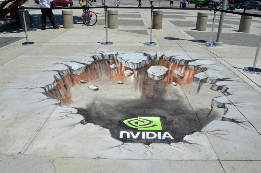 If viewed from the right direction, e.g. the artist's camera position, the illusion works perfectly |