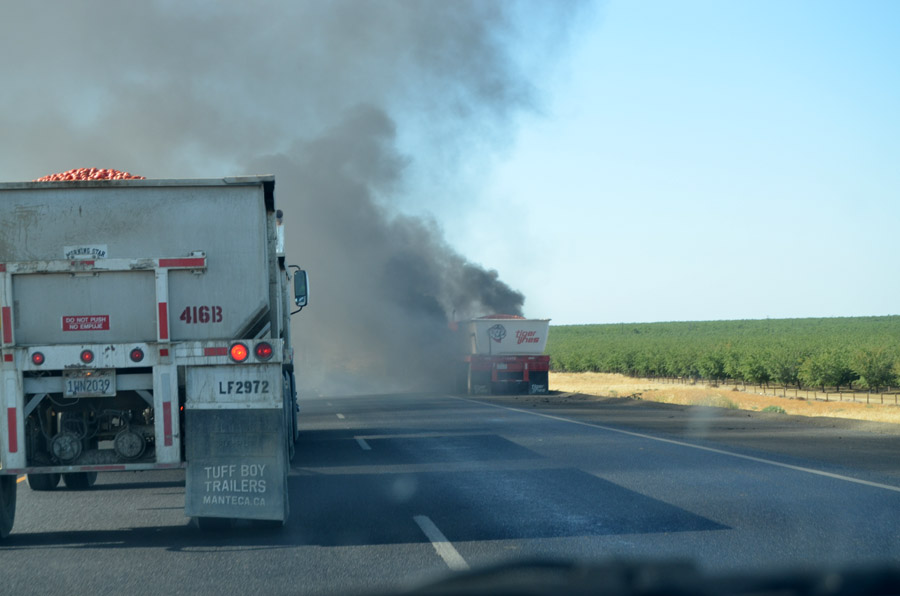 On the way back to Citrus Heights, a Hwy 5 mishap (I don't think it was the tomatoes that spontaneously caught fire) |
