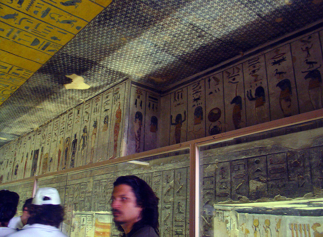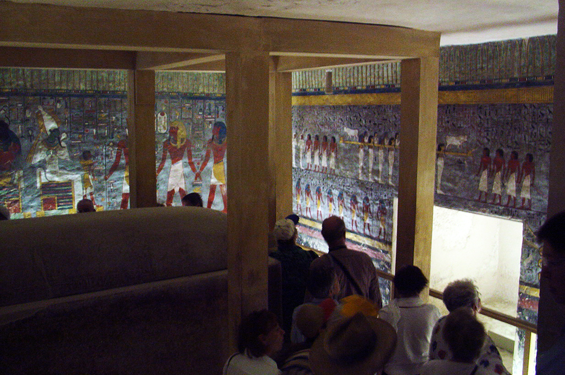 The next tomb was that of Rameses I. It was crowded, and Melissa shot on the move with a camera setting more light sensitive than mine. The sarcophagus is visible in the bottom image. It's good to have a friend, and these came out perfect. Yes, she was stared at, but no one said anything. A few people here were brave and took chances in the crowd. This was a very popular tomb for good reason. |