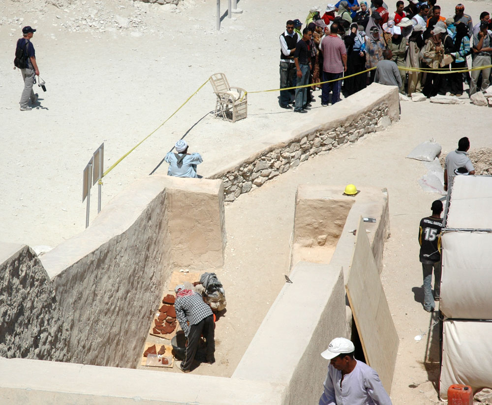 The head archaeoligist running the excavation at the tomb of Amenmese. By the time we returned from our long walk, they had laid out shards and items that they had uncovered. |