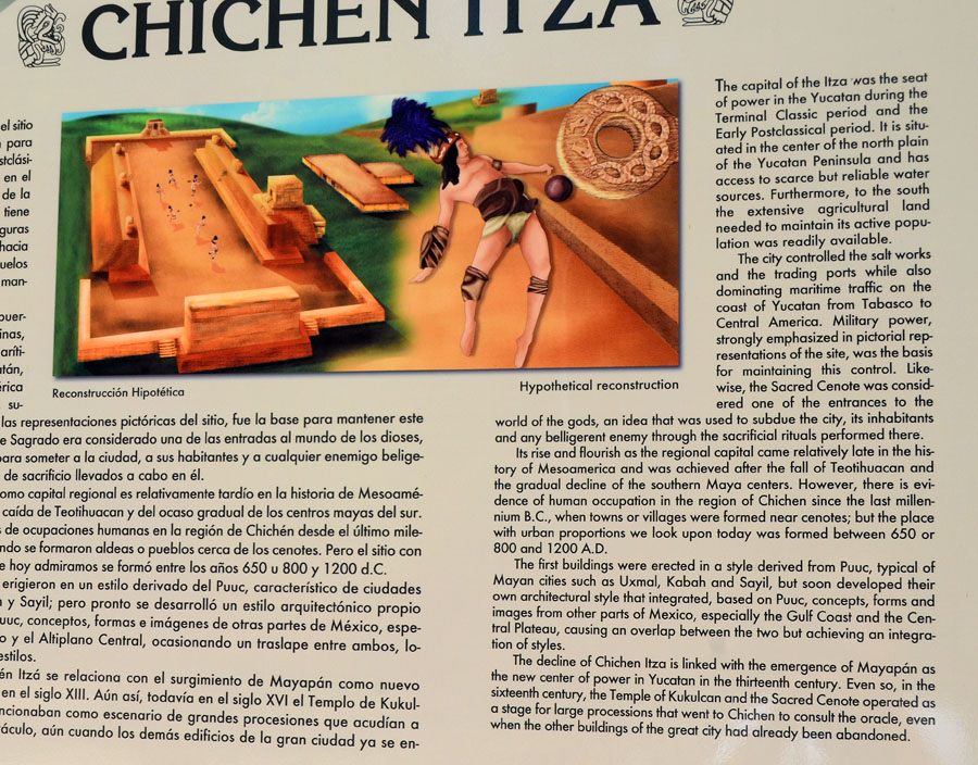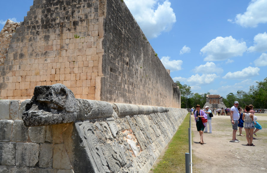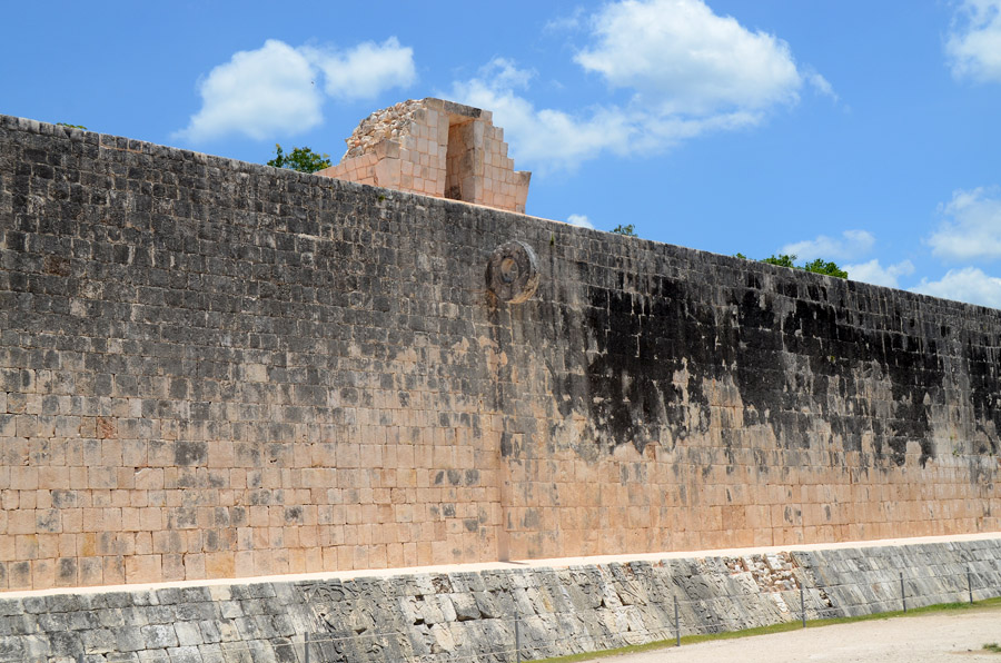 | This ballcourt is different, much larger in every way, than all the others in the Mayan world. Because of that, the usual rules of using only hips to get the ball through the stone hoop were not in place here. |