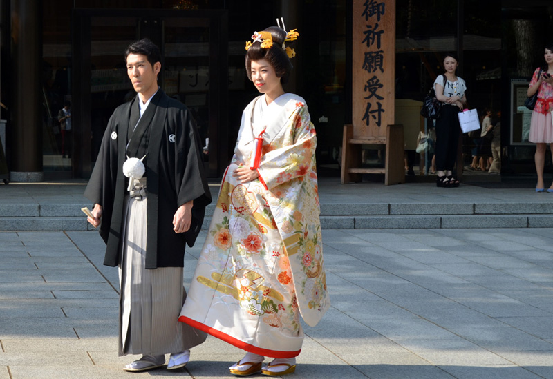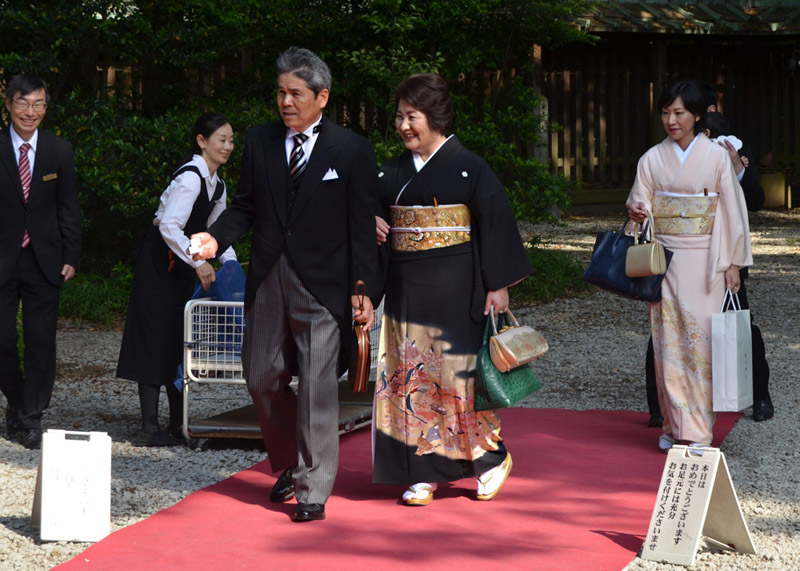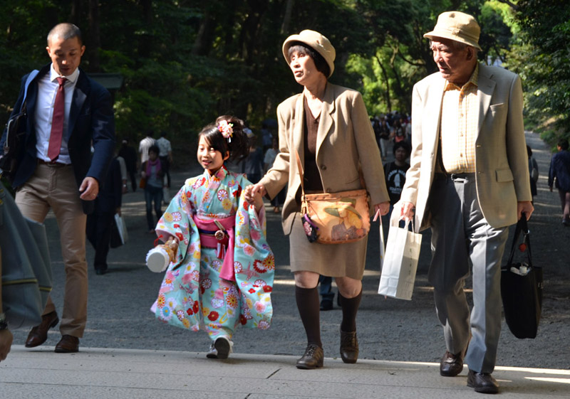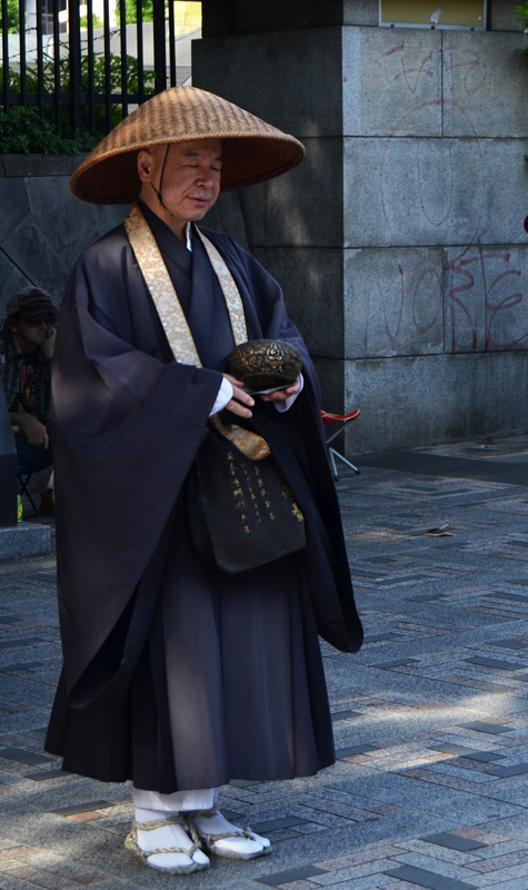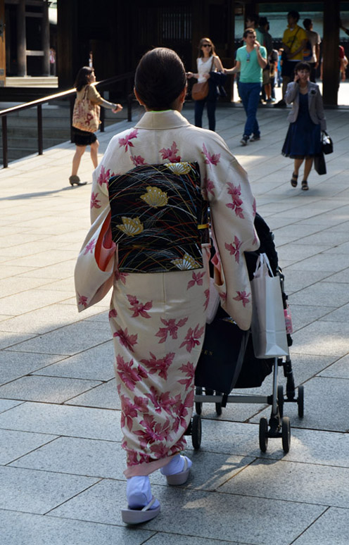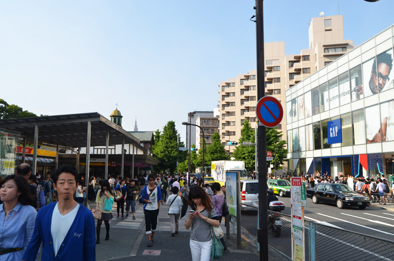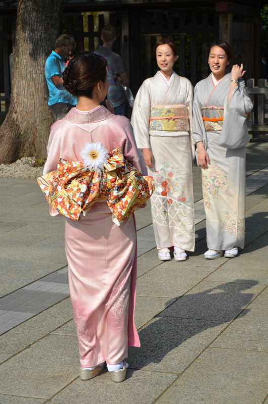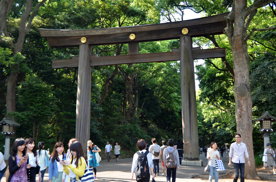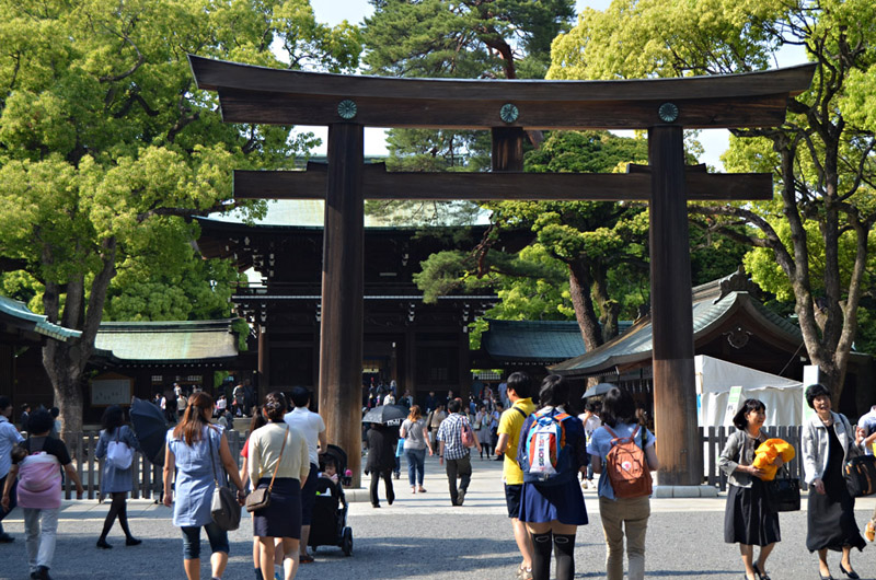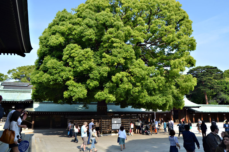 I visited the Meiji shrine for the first time in 1968, and remember a little kiosk where a vendor was boiling and selling squid on a stick. Today it's a different and much more busy and commercial environment around the shrine, easily reached by subway or commuter train. None of the buildings on the right of the street existed back then, and the station has been rebuilt to handle much greater traffic volume. |