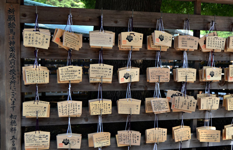 At the bottom: prayer tablets that can be had for a donation and the individual will write a wish or prayer on the back and then hang the tablet here, in this case under the large tree |