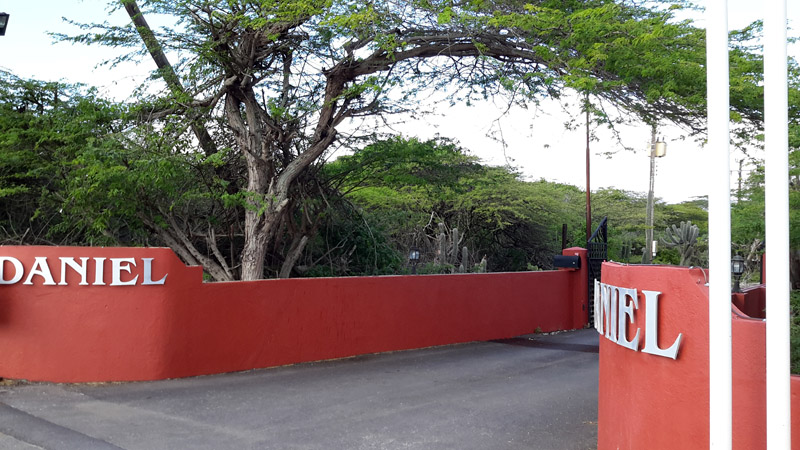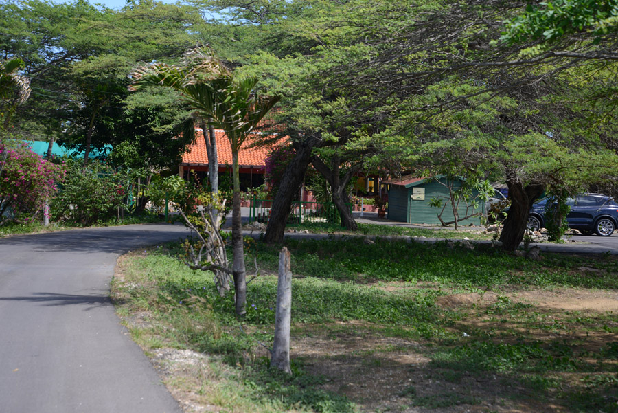 Out in the country, about 30 minutes from the center of town by bus. From the airport, of course I did not know that until I figured that out by observation, you can get off at the large traffic circle with the large silver metal lizard (gekko) and from there catch the bus to Daniel's Landhuis. There is a convenient bus stop practically in their driveway. You can reverse that, when you leave the Landhuis to go to the airport. Tell the driver where you are going, then get off at the traffic circle and walk across to the other bus stop that will take you to the airport. Doing this will save quite a bit of time each way. |