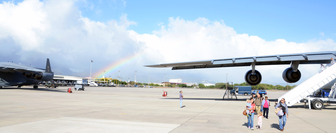 Upon arrival, there were no leis, but we were greeted instead by a rainbow over Diamond Head, |