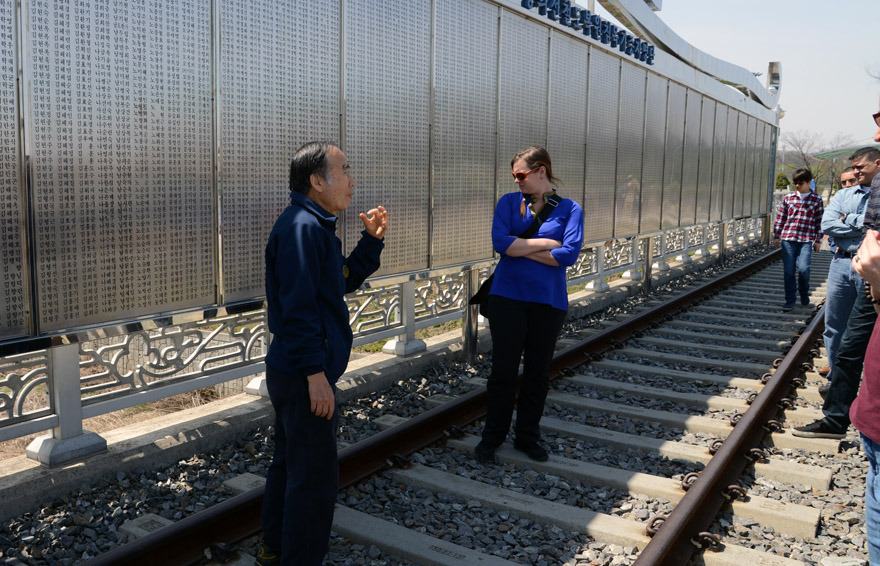 Our guide commenting on the names of those who donated to have this station built. Next to him, Ashley, a widely traveled young woman who has her own travel blog. |