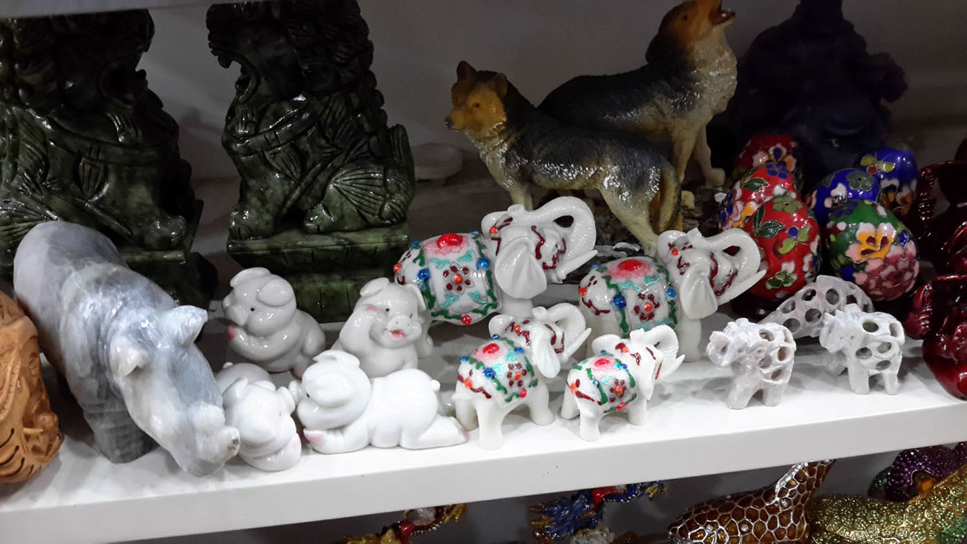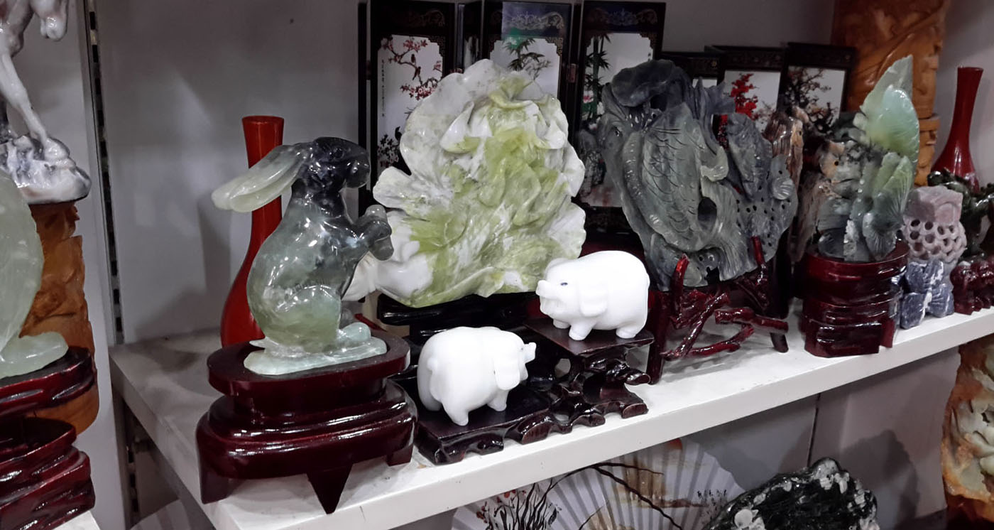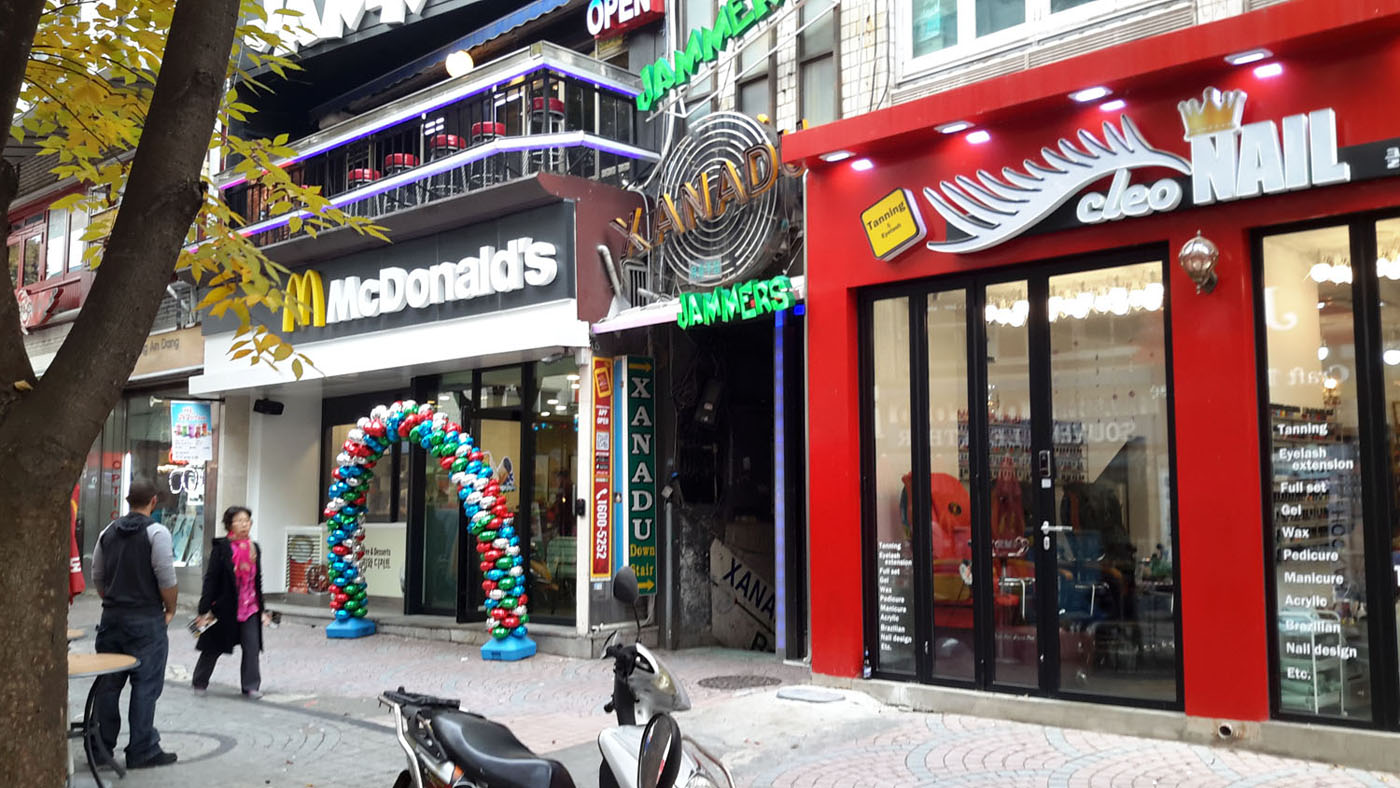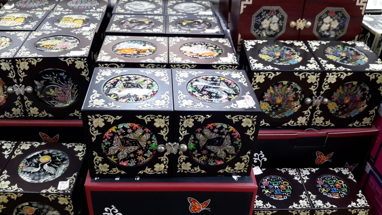 The mistress of Mike's Souvenir Shop - there's a Korean Mike, too |