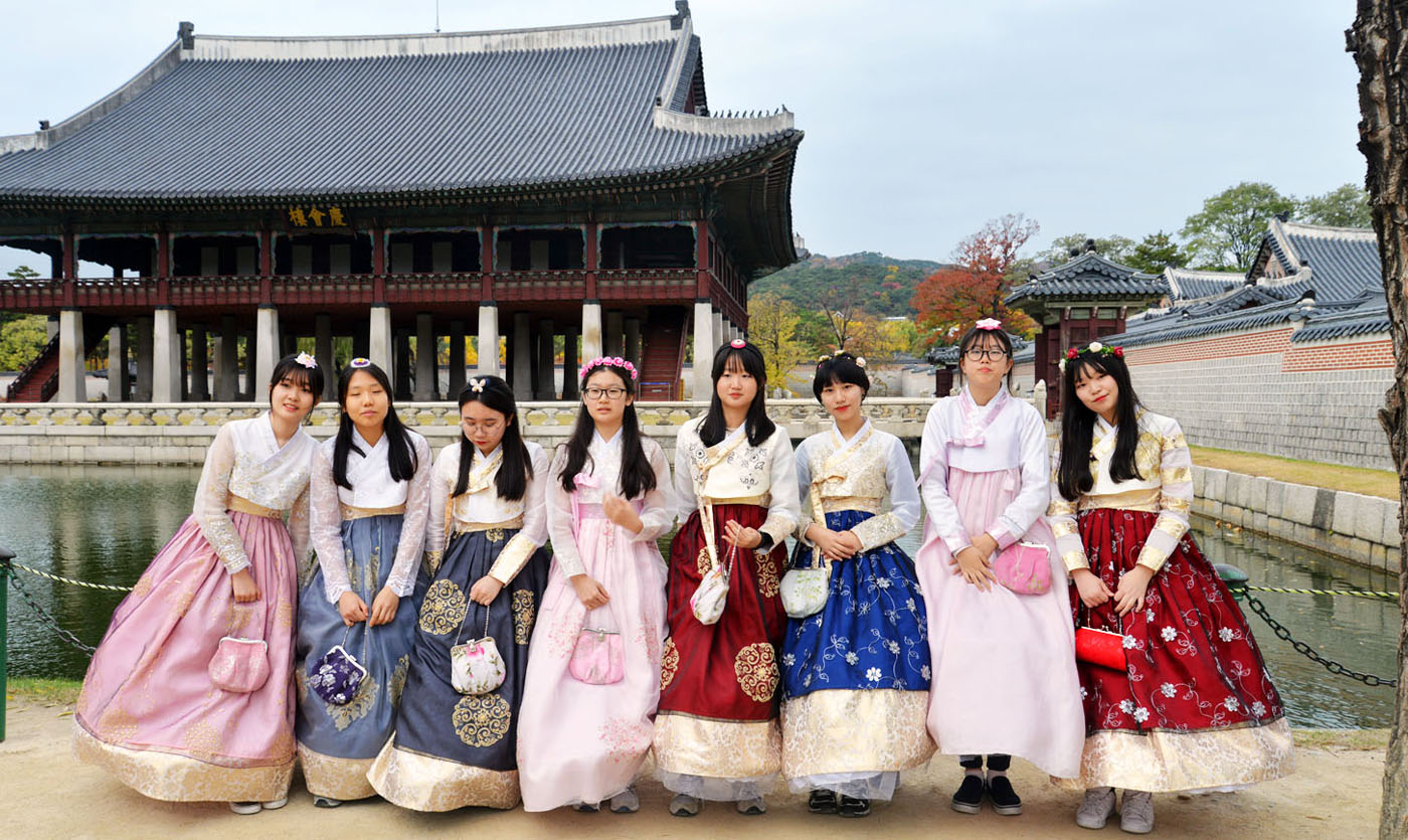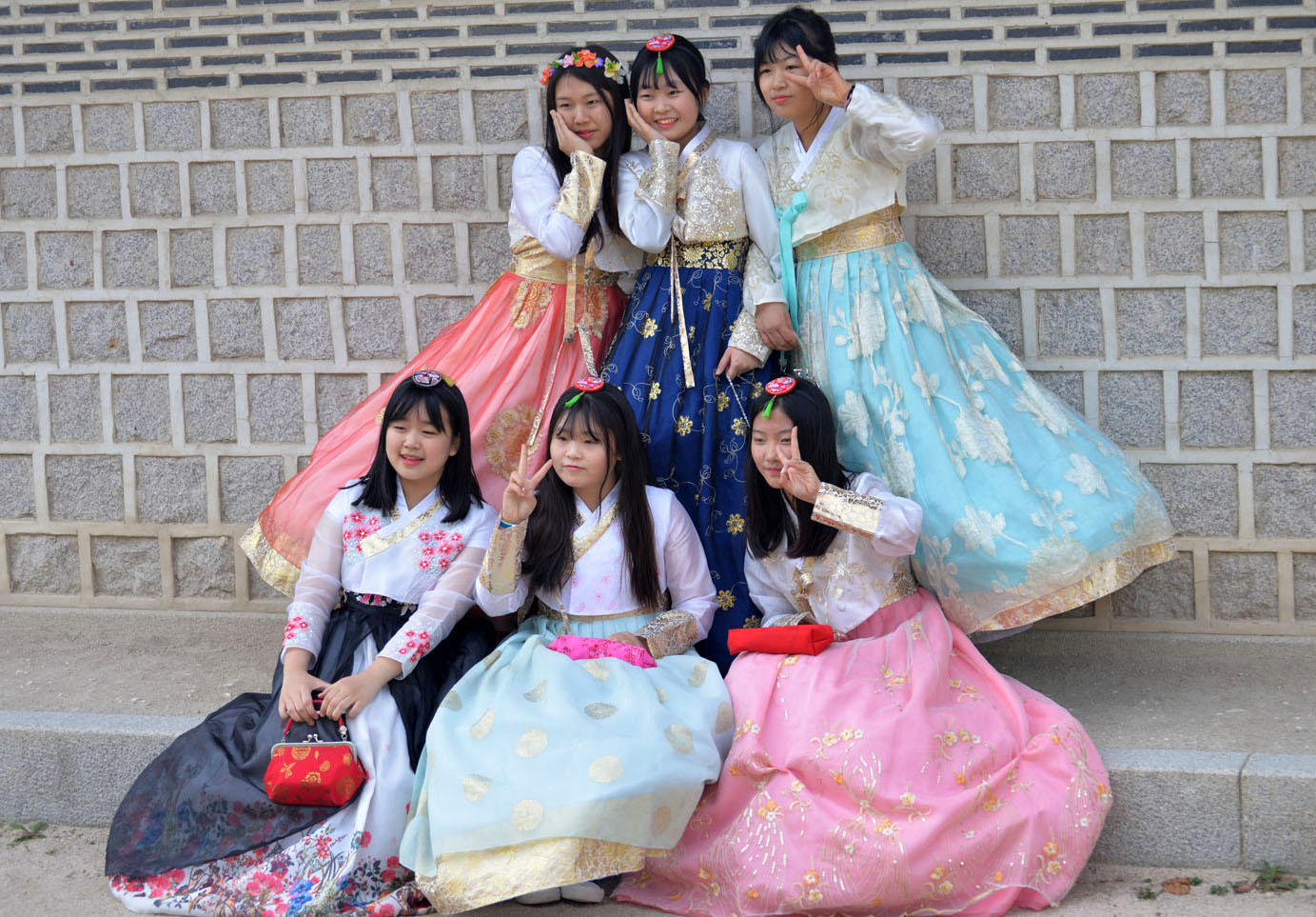 | So, I saw this large gaggle of girls who then stood in a row to look at a temple. Then they were getting ready to leave. They had cameras. I stopped them and waved for them to line up again, facing me. Oh, yeah, they immediately gave me a camera and lined up. A few shots later I stopped them once more to get a shot for me with my camera. And this is what I got. |