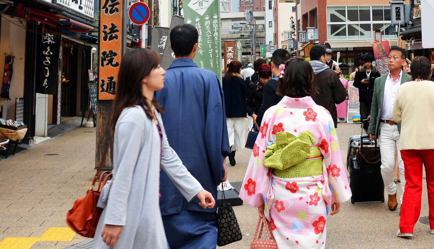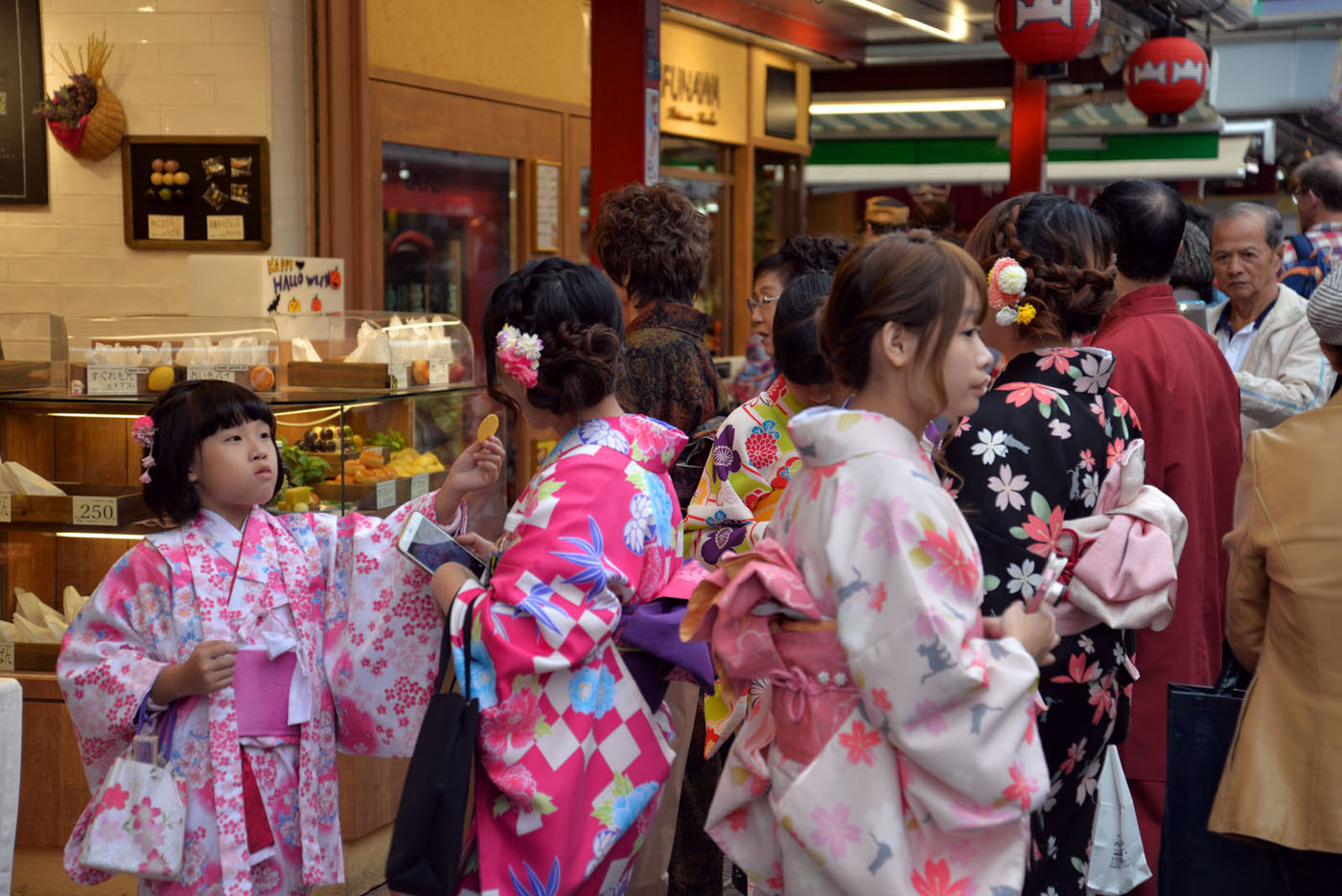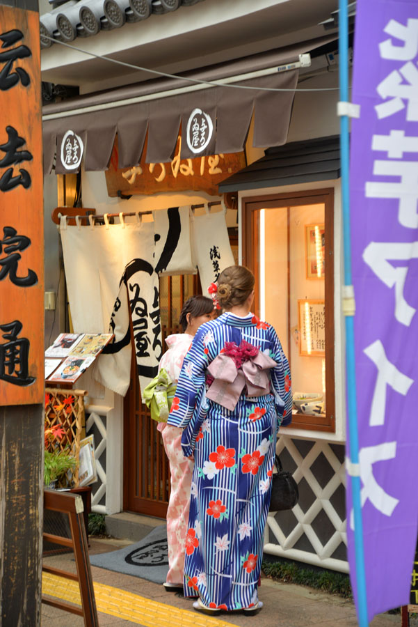Notice the sign in the front. Not everyone has traditonal Japanese clothing in the house, and here one can rent kimonos |