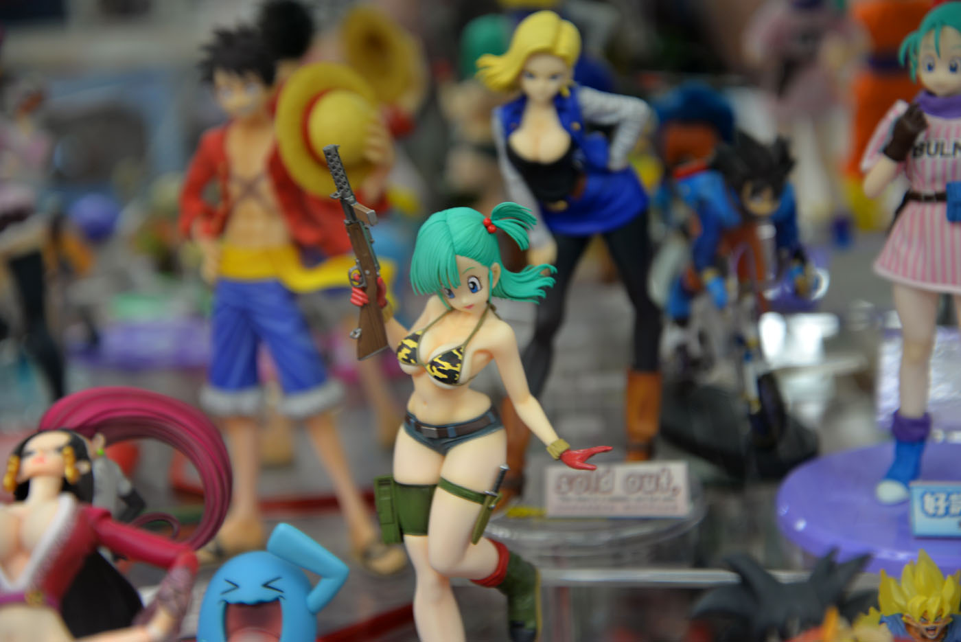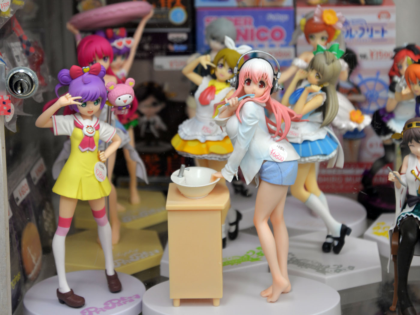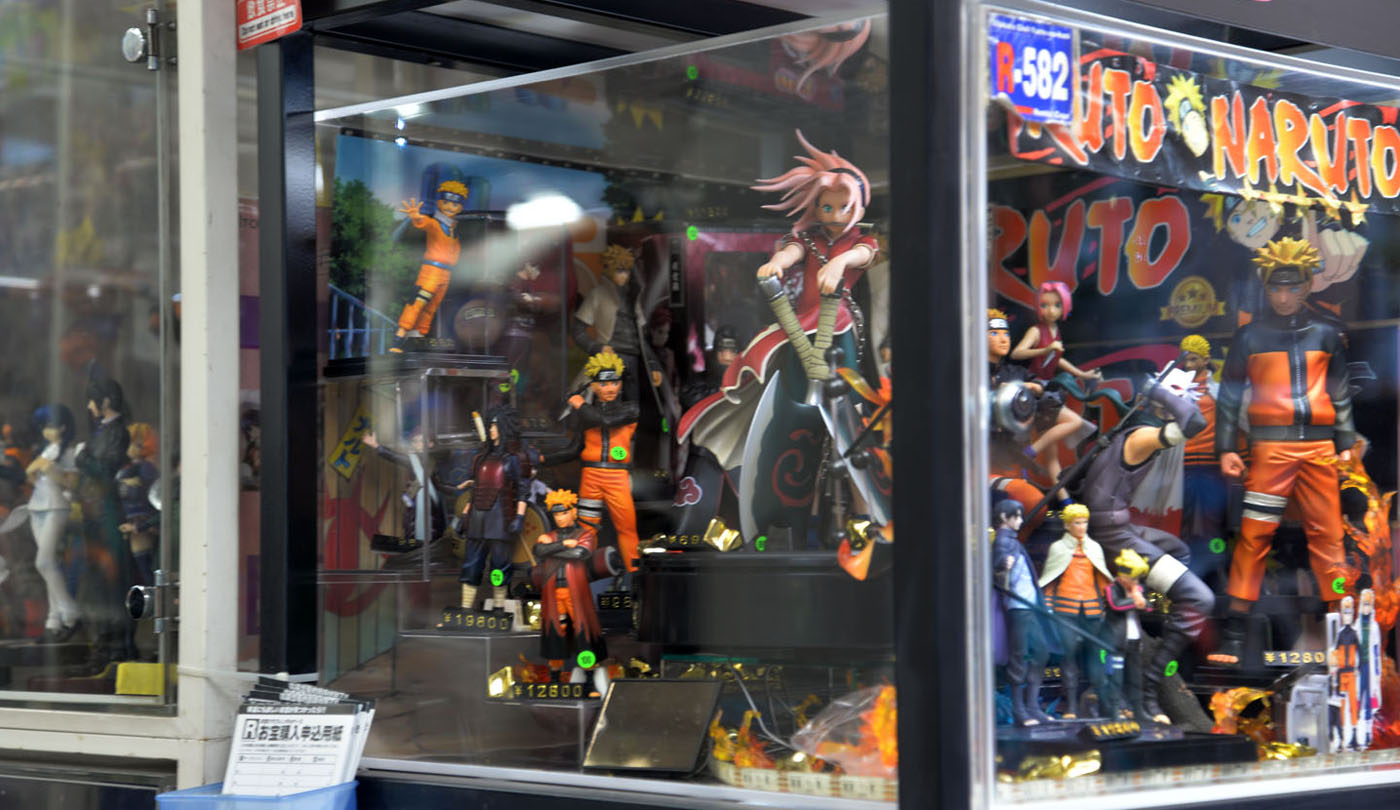 Then there are the shops. There are electronic gear shops, and these, selling resin figurines of anything you might imagine. Here a Naruto show collection, 3D printed, hand painted, and not cheap |
