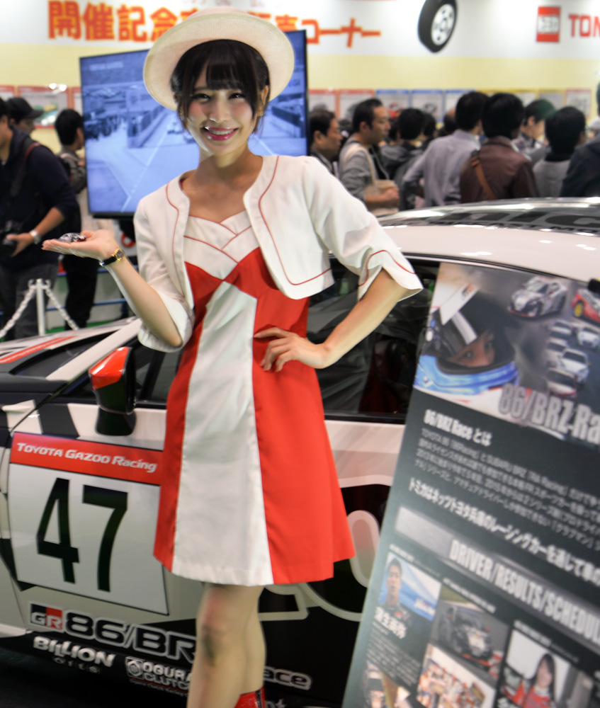 The Japanese version of Matchbox model cars. That was too good an idea not to copy. She's holding a replica of the Subaru BRZ racer behind her. Behind her was also a huge line that wrapped back and forth. I asked if any English speakers were there and a couple spoke up. I asked what they were in line for, a movie? A free sample? No, no, a sample, but limited and for sale, not free. One of those must-have limited show collectors editions. Moving on |