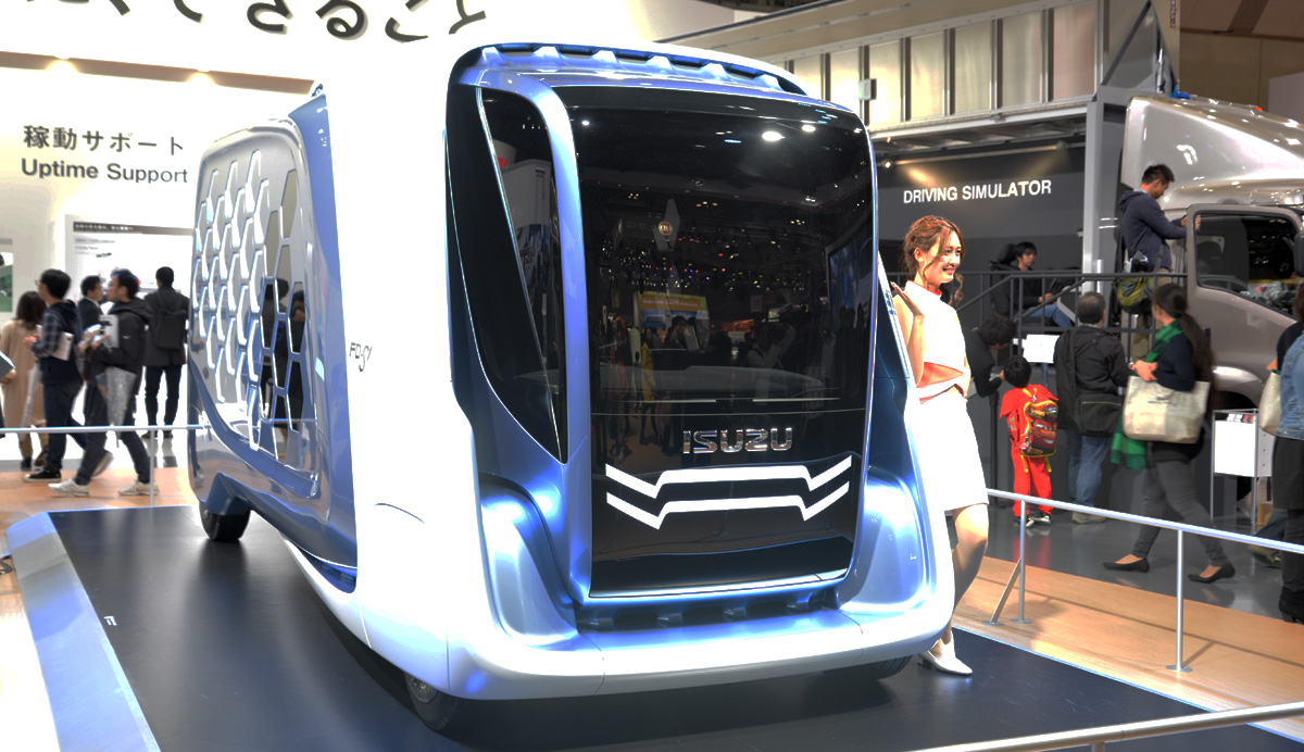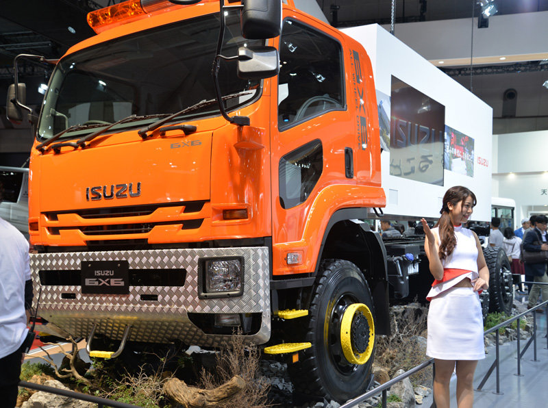 While present with more conservative trucks, Isuzu brought this amazing looking vehicle to the show. A small bus? Seems to be. |