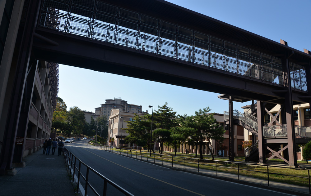 A familar sight for all who walk on and off base. Osan's schools and a crosswalk to the parking structure on the left |