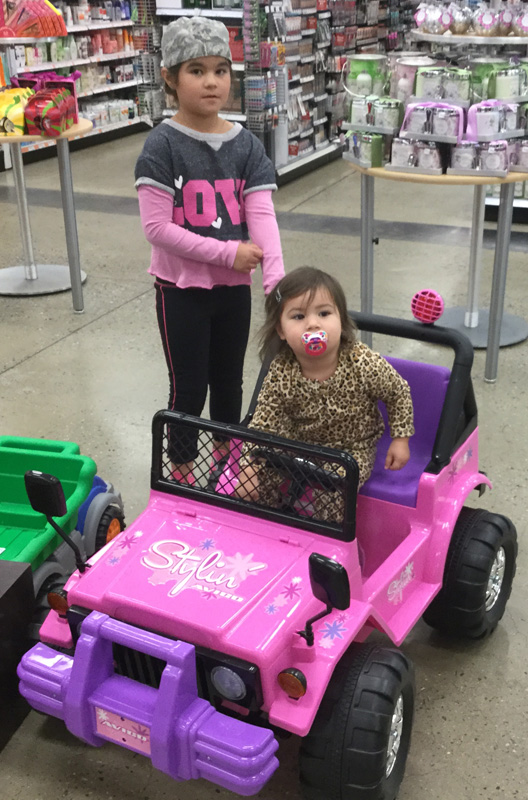 Inside the BX, a couple of sisters who both would love to own this. What is the world coming to? Whatever happened to bicycles? |