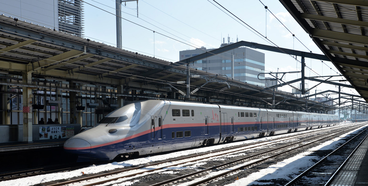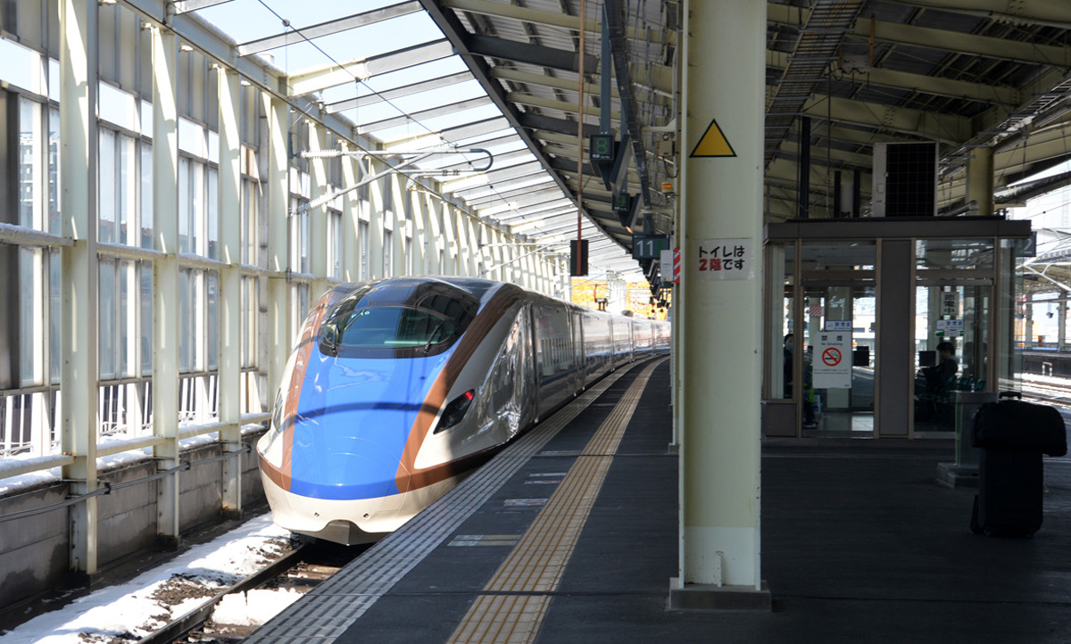 The map shows where I needed to go, and it was nearly most of the way across the main island of Honshu. Taking a bullet train, called Shinkansen, was imperative for my plans. The Hyperdia schedule showed all of the transfers I needed to make. I've been getting around Japan for decades and had no trepidations diving into the busy rail system. I made all of the connections and then at Omiya Station swtiched to the Shinkansen part of the terminal. You can see three different types of bullet trains in the attached pictures. Whenever I ride a bullet train, be it the Shinkansen in Japan or the TGV in France, within minutes of riding it, I have a feeling of deja-vue. I sit and read and my mind tells me that I am in an aircraft. It never changes for me, and looking out is always a bit of a shock.