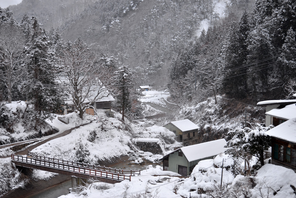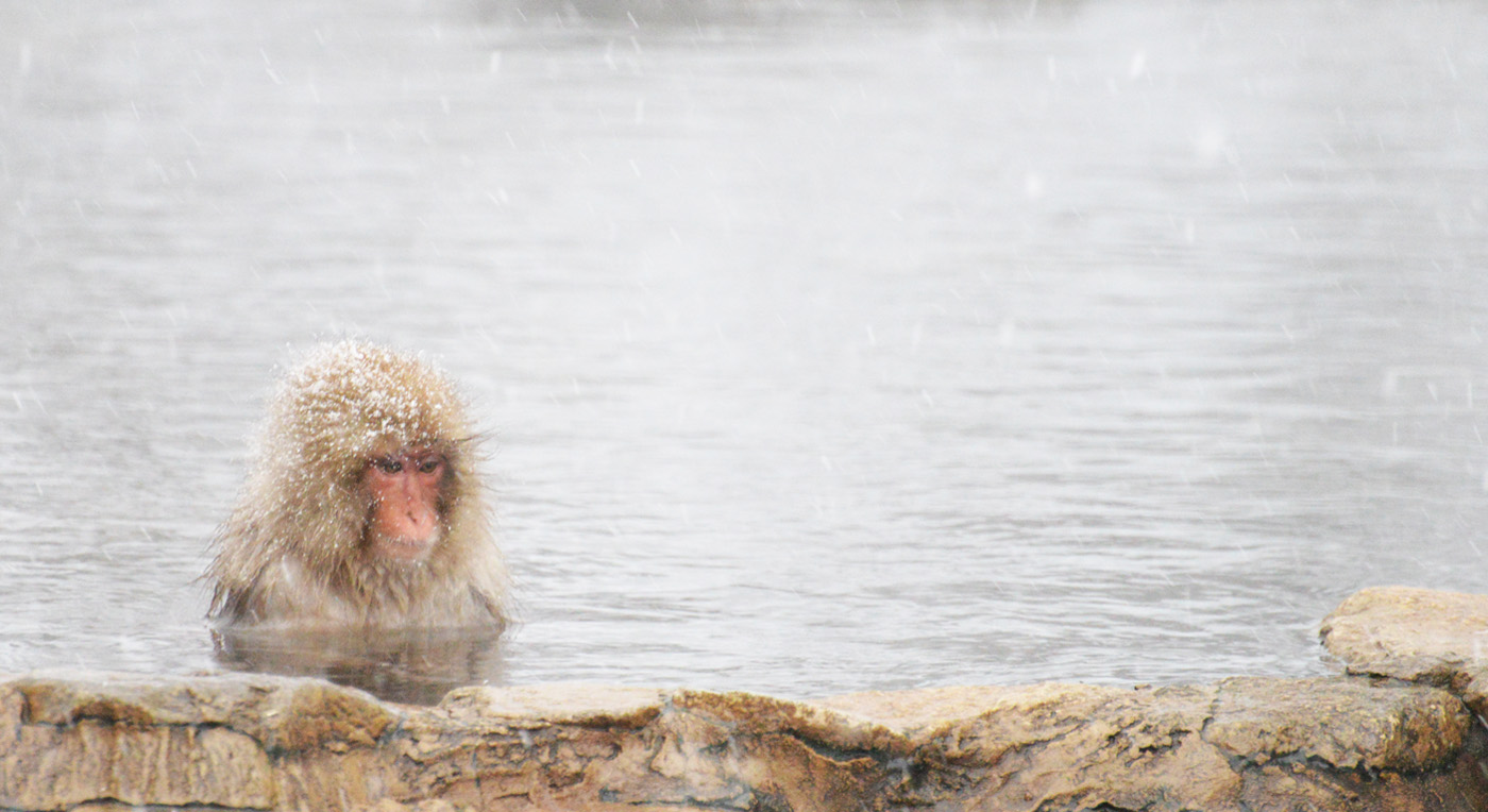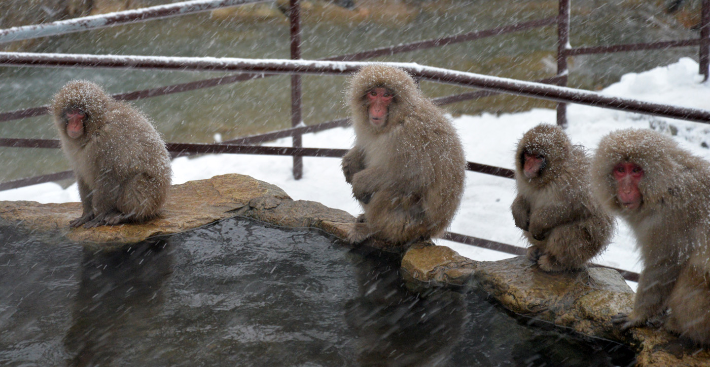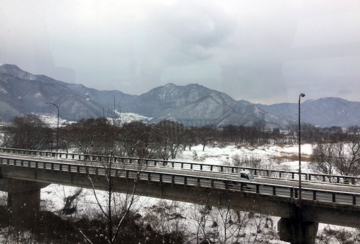 So, I got to Nagano station. On the platform is a great noodle stand and I was hungry. It had to be good because of sizable number of Japanese ate there. Unfortunately, by then my mind was processing ahead to the next steps I needed to take and I did not take any pictures. After the excellent noodle soup, I exited the platform and asked an attendant, still in the Shinkansen section, how to get to Snow Monkey Park. He pointed at a large hand-written sign that indicated two busses that would take me there. I followed another sign, once I checked through the gate, and found the bus stops down below, next to the station. I waited and a couple of young American guys came up with booklets in their hands. I asked them if those were tickets and they said that they were a combined bus round-trip and park access ticket. They told me where to get it. That was the riduculous part. A bus just arrived and I followed their directions. I had to go down a long flight of stairs, follow a long tunnel all the way under the Nagano train station, and nearly at the other side, there was a series of windows, once of which advertised the park and bus tickets. By then it was after 1400 (2 PM). By the time I finally got back, the bus and the two Americans were gone. The weather was hazy, snow was in the air, and the next bus was not due for nearly an hour. I was furious. I stood there in the cold wind and watched buses pick up people on winter vacation tours from all over the world. The greater Nagano area is a prime ski and winter sports area. Japan, after the US, is the second most ski-crazy nation in the world. Meanwhile, as the sky darkened, so did my mood. I was thoroughly pissed off. Finally, at long last the bus arrived. I got on and at least was out of the icy wind. The bus, at guaranteed safe speeds, slowly made its way out of town, passed the old Winter Olympics stadium, and into the open country and toward the mountains. When I finally got to the Park bus stop, an large group of Western, mostly American, tourists were waiting to get on. An old Japanese woman was running the bus stop and kept yelling four and held four fingers in the air. I looked at the tourists and asked, what does she want? They said, the park will close at four. It was 1510 (3:10 PM). Dang! This did not look good. I was very upset by this time. This whole excursion cost me about $150.