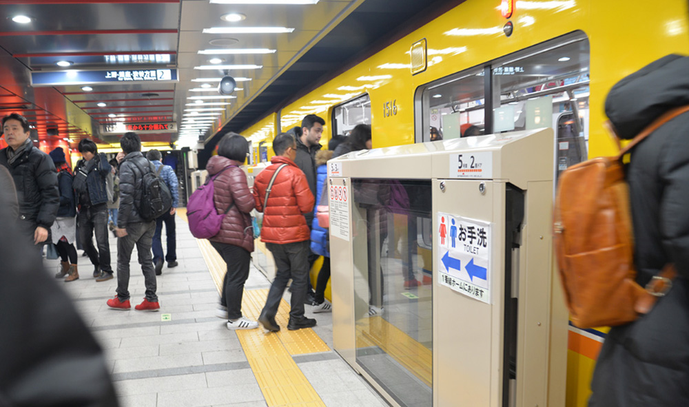 If you come by train (cheaper than the subway), you will change to the Ginza Subway Line at Kanda Station. There will always be attendants to help. I happen to look outside the station and saw this coloful corner.
