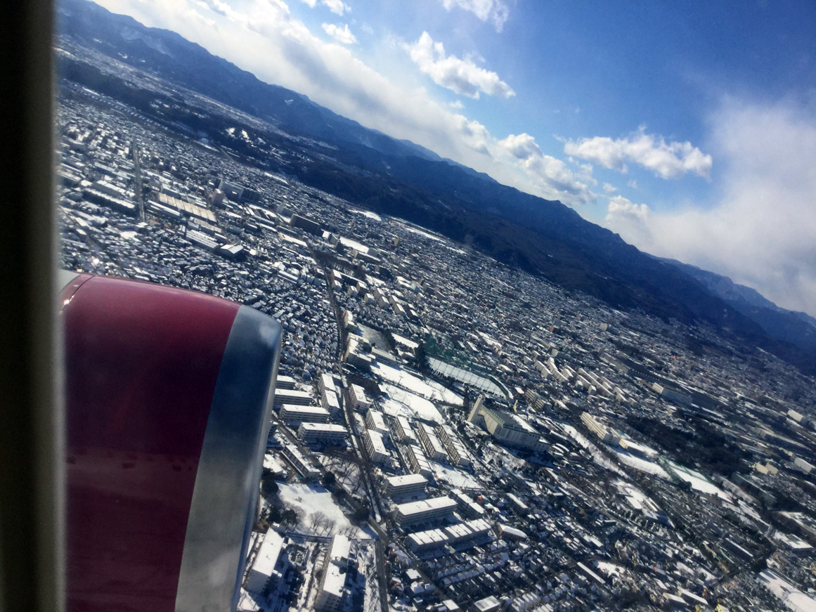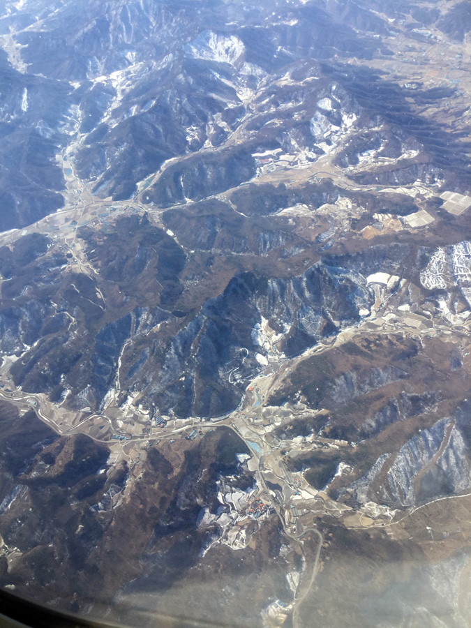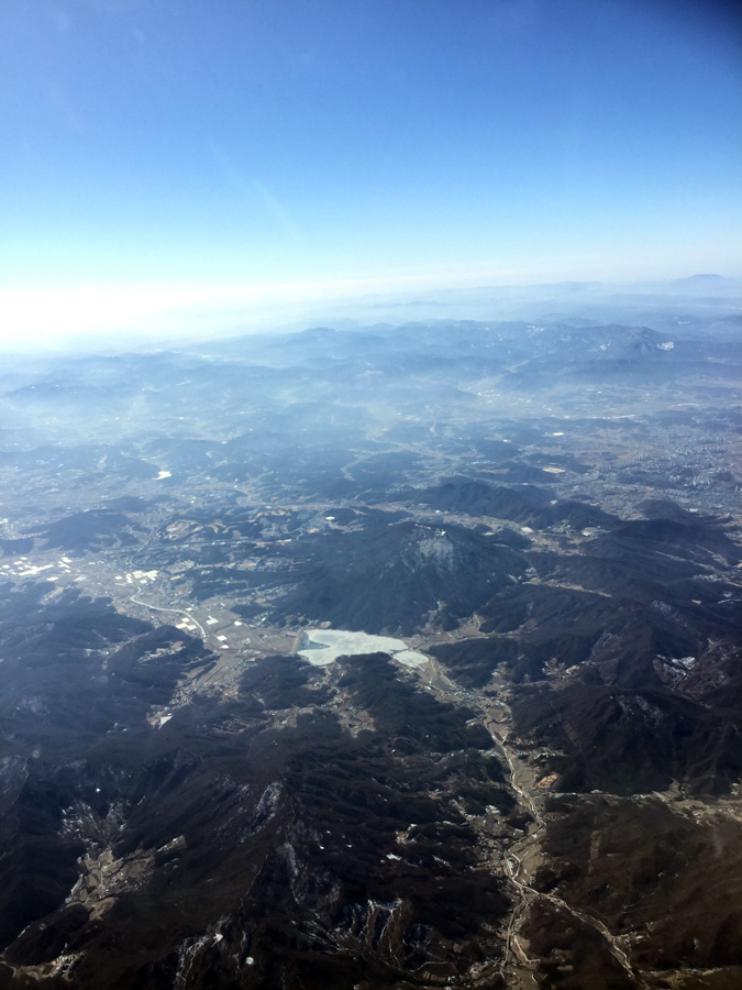 Flying back to Japan, I saw almost no snow in South Korea. not even in the higher mountains |