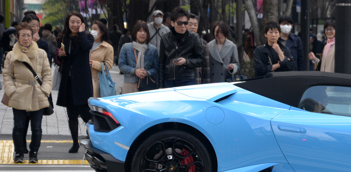 After admiring the Lamborghini coming by, I looked at the full-sized image when editing, and suddenly realize that the driver was clearly well-known to the women. Just look at their excited expressions (not of the guys, so much). He may have been a movie or TV personality. No telling. All I know is this, if you or I had been driving by in this car, we would not have elicited the same reactions.