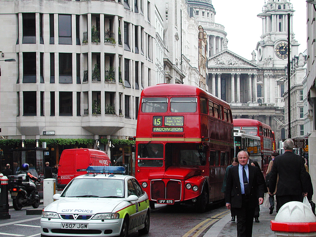 It gets busy downtown around the financial district. Interesting, happen to catch the Paddington bus in this photo. That's where I used to stay.